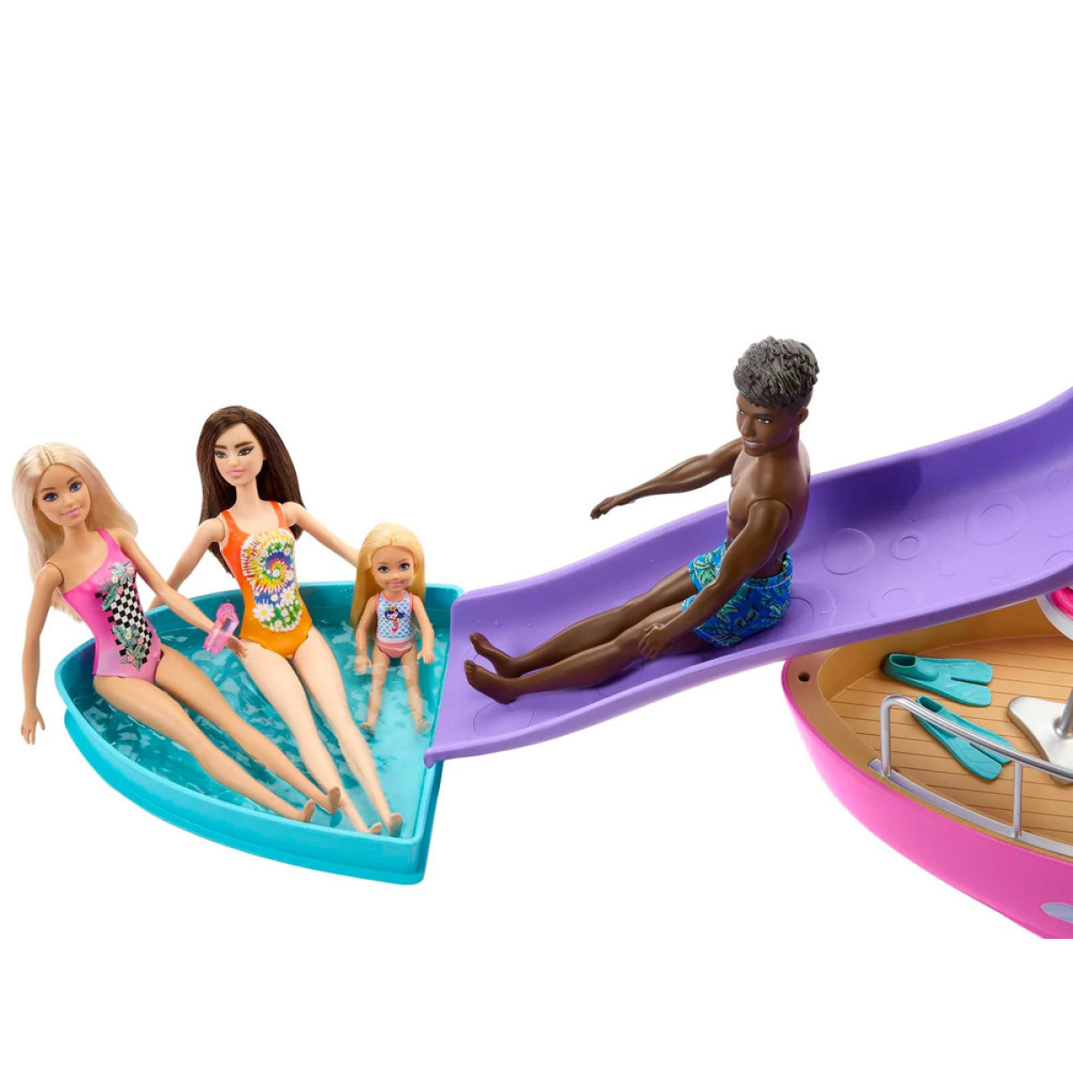 Pealmisel tekil saab Barbie juhtida paati, päevitada või liugu lasta otse basseini. Ülemine tekk on eemaldatav, võimaldades lihtsat juurdepääsu alumistele ruumidele ja võimaldades lastel ruumi täielikult kasutada.