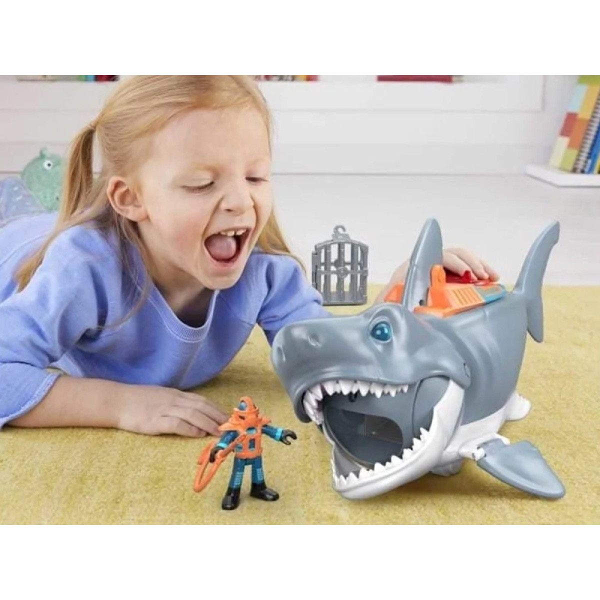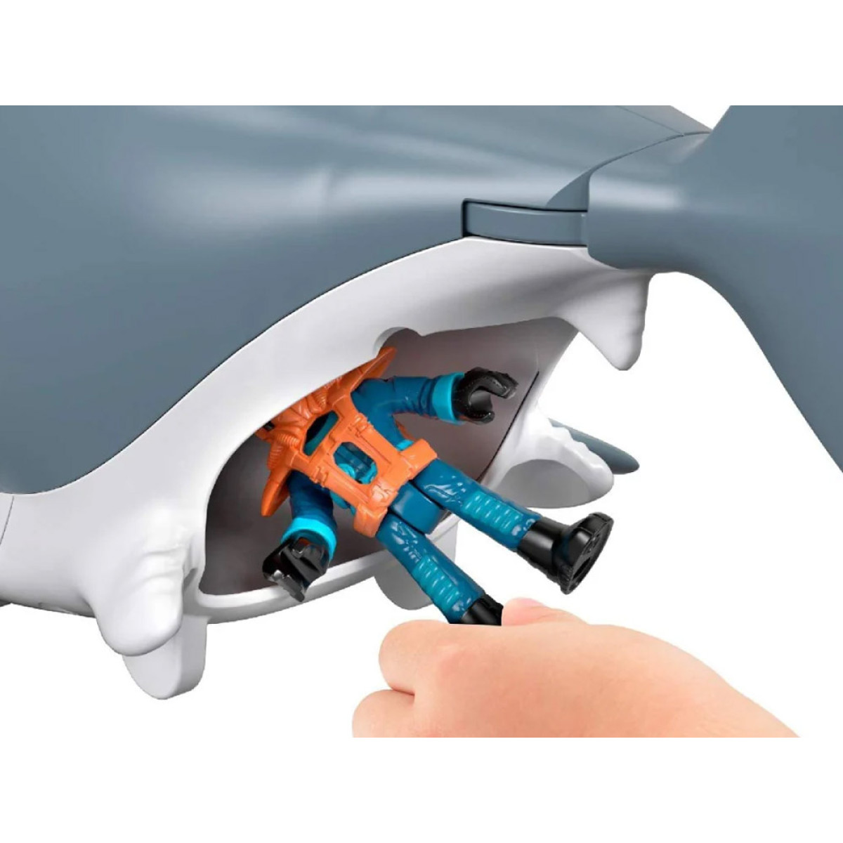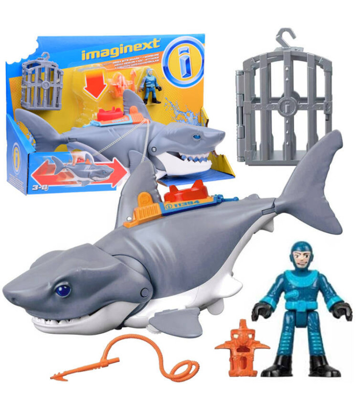 Imaginext Hai Rünnak GKG77 on mänguasi, mis võimaldab luua seiklusi täis tegevust ja erinevaid stsenaariume. Kes sel korral selle mängu võidab? Kas sukeldujal õnnestub põgeneda suurt ja ohtlikku haid? Selle komplektiga saab teie laps tegevuse loojaks ja arendab loovust. Mega suu hai Imaginext on tohutu kiskja, mis võib sukelduja tervelt alla neelata! Avastage veealune maailm mänguhai abil. Lükake seda, et teha realistlikke „ujumise” liigutusi ja klõpsutada suurt suud. Vaadake, kuidas kiskja „neelab” sukelduja alla ja seejärel eemaldage figuur mänguasja tagant.