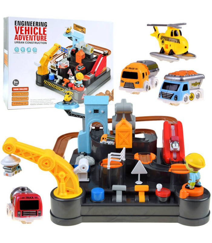 Mänguline ehitusplats on ideaalne valik igale lapsele, kes armastab ehitussõidukeid. Komplekt koosneb takistustega rajast, kus lapsed saavad turvaliselt juhtida ehitussõidukeid laadimisest kuni mahalaadimiseni.