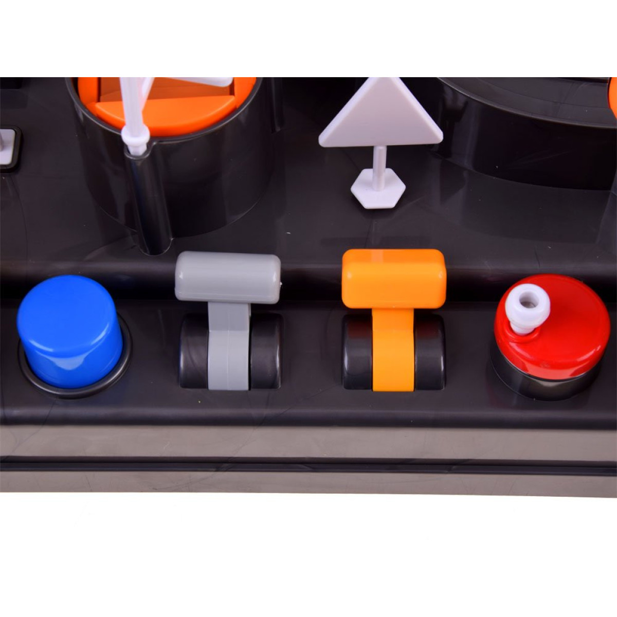 Mänguasjal on torn, millel on digitaalne kell patareidega, võimaldades meie ehitajal mõõta läbitud rada, ja see mängib rõõmsat meloodiat, kui kella sisse lülitada. Komplekt on valmistatud täielikult plastikust, mis tuleb ise kokku panna ja alustada lõbusat mängimist.
