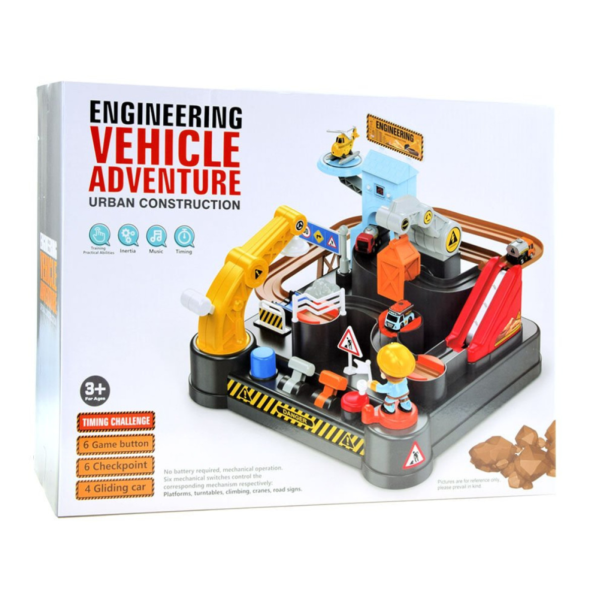 See võistlusrada pakub ehitussõidukite fännidele palju tunde unustamatut mängurõõmu. Komplekt on pakitud ilusa värvilise karpi, sobides ideaalselt kingituseks.