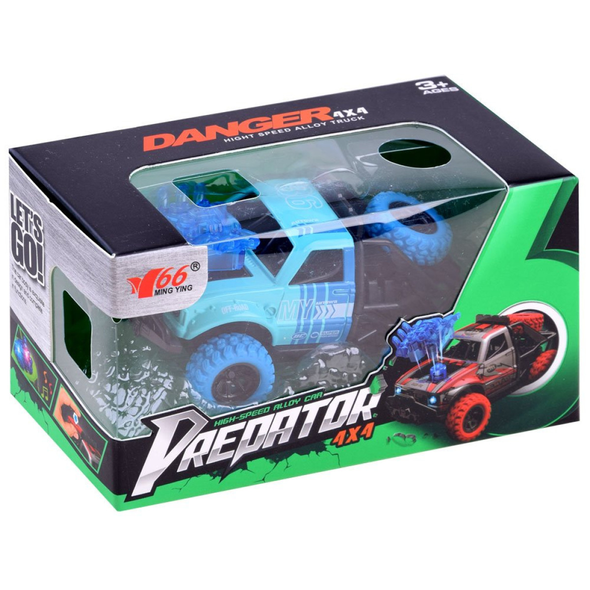 Predator on 4x4 metallist sõiduk vedrumehhanismiga, mis mitte ainult ei sõida, vaid pakub ka hämmastavaid heli- ja valgusefekte! Lihtsalt tõmba autot tagasi, lase lahti ja vaata, kuidas see kokkupõrkesse suundub – põrku takistustesse või teistesse autodesse ja näe, kuidas mootor välja lendab! Tulemus? Spektaaklid nagu märulifilmides!