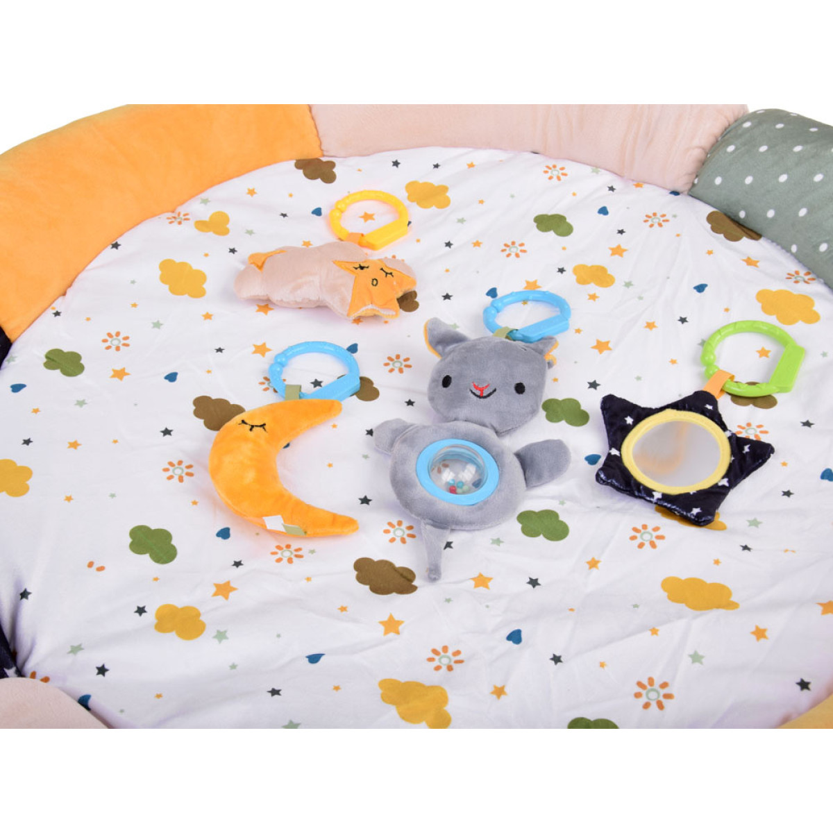 See on ideaalne koht igapäevaseks puhkamiseks, mängimiseks ja sensoorseks arenguks igale beebile. Hoides end meeldivates rahulikes roheliste ja kollaste toonides, meenutab see oma välimusega õrna pilve. Õrn muster pilvede, päikeste ja tähtedega loob rahuliku, lõõgastava atmosfääri, mis soodustab lõõgastumist ja keskendumist.