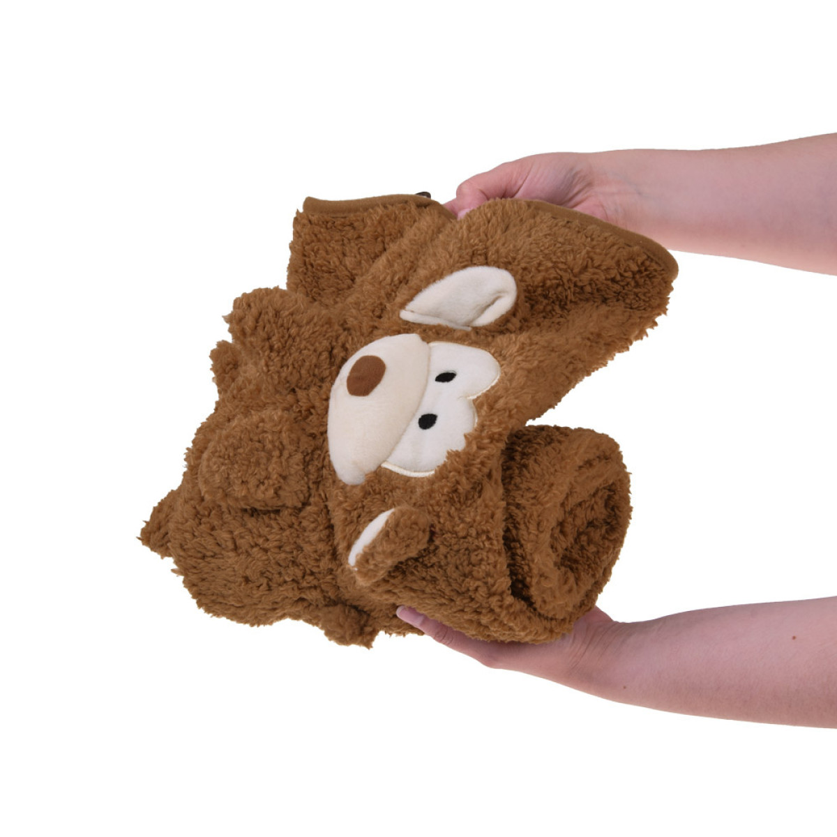 - Kaks funktsiooni ühes - See tekk on midagi enamat kui tavaline kate. Tänu oma unikaalsele disainile saab selle kiiresti muuta armsaks mänguasjaks. Teki rullimine ja kinnitamine silmusega muudavad selle hetkega looma, mis on ideaalne kaaslane kaisutamiseks ja mängimiseks!