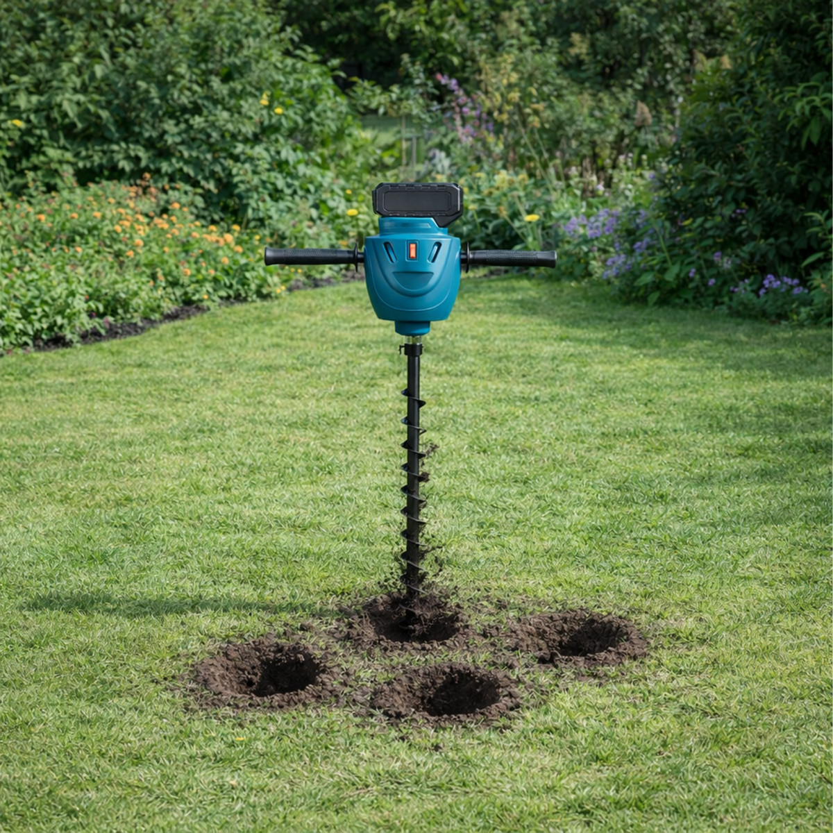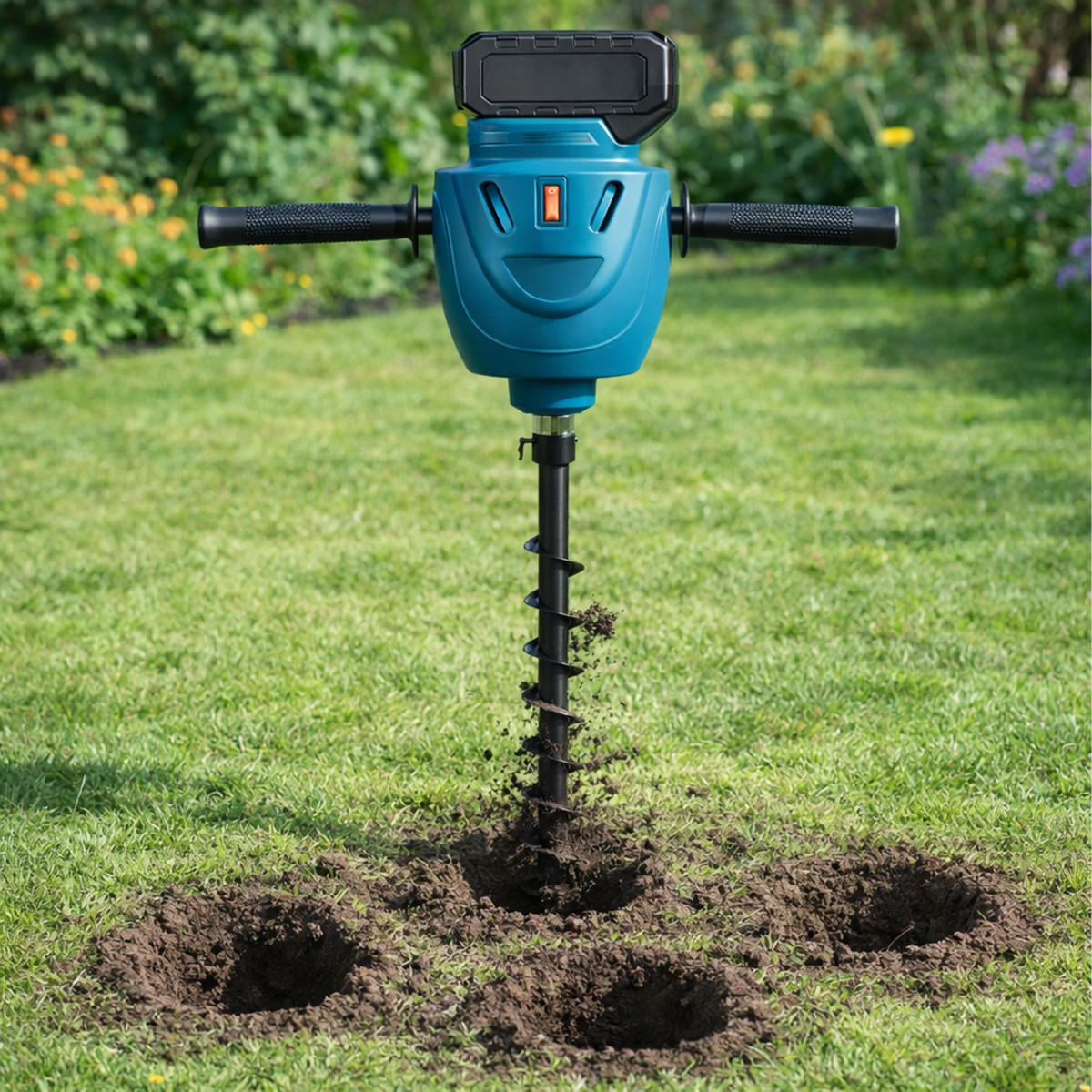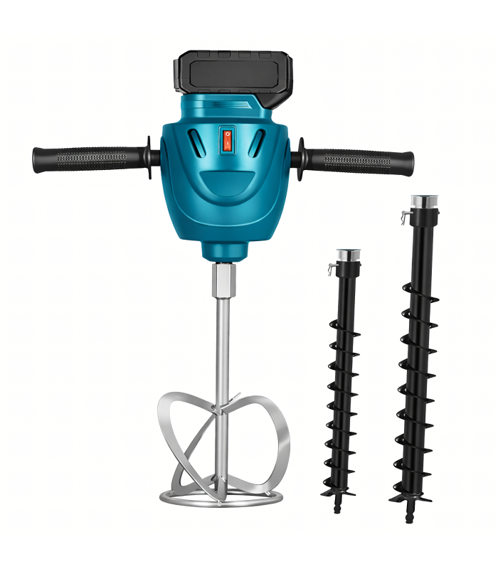 Akuga mullapuurija maa ja segude puurimiseks. Komplekt sisaldab kahte akut, mis tagavad pika tööaja.