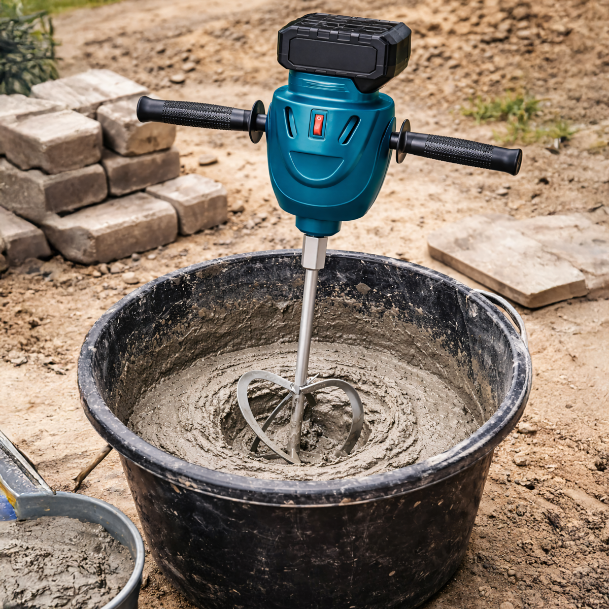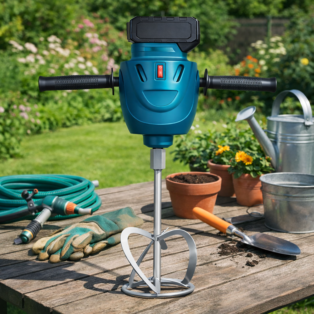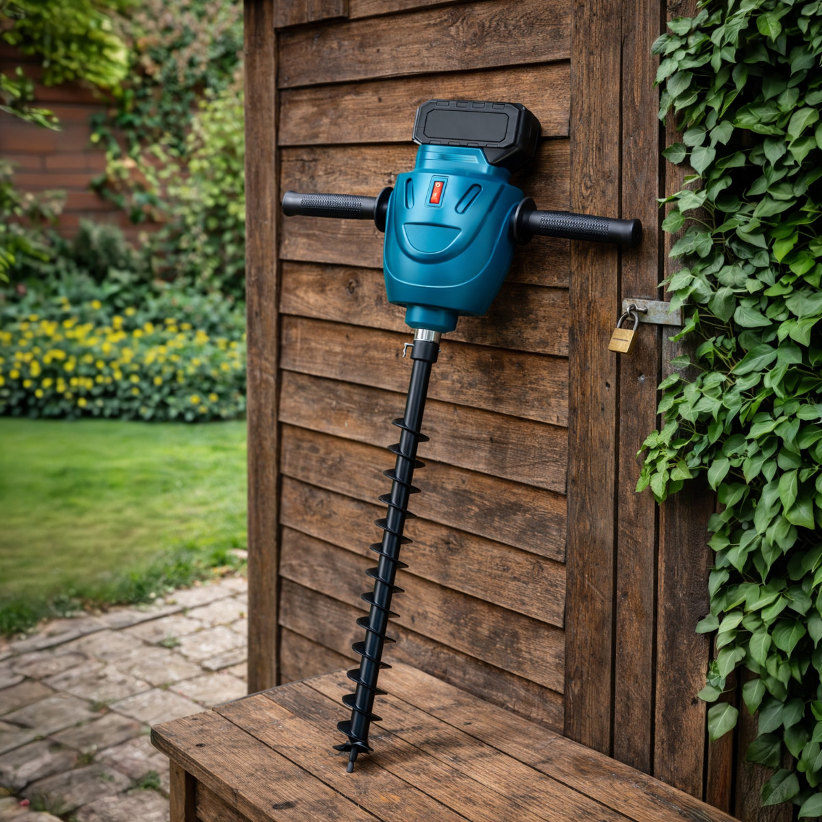 Akuga mullapuurija maa ja segude puurimiseks. Komplekt sisaldab kahte akut, mis tagavad pika tööaja.