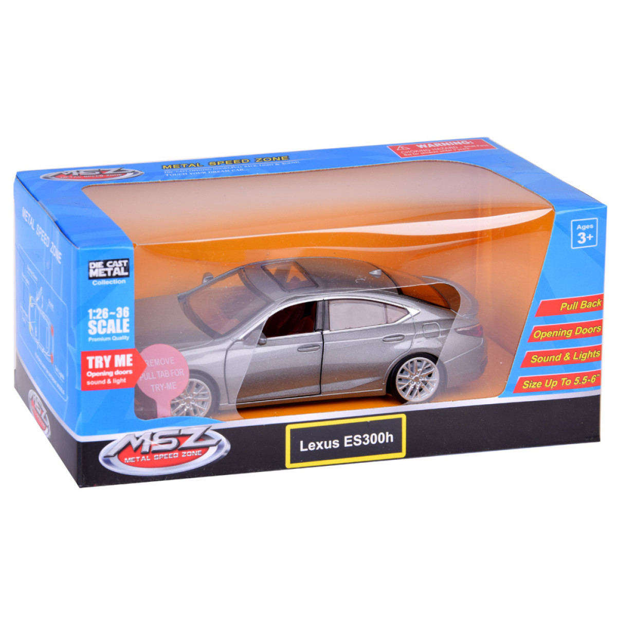 Lexus ES300h mudelauto on suurepärane täiendus iga autode mudelikollektsiooni jaoks. Sõiduk on hoolikalt ja esteetiliselt valmistatud, pöörates tähelepanu väikseimatele detailidele, mis kindlasti rõõmustab iga väikest juhti. Autol on avatavad uksed, samuti heliefektid ja valgusefektid. Lexusel on hõõrdumise jõul töötav ajam, mis tähendab, et pärast tagasitõmbamist läikival siledal pinnal liigub see edasi. Auto töötab ka lükkamisel.