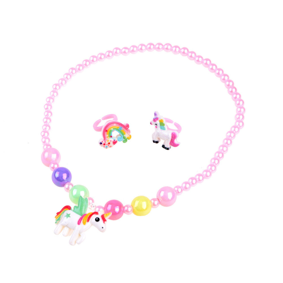 Lisaks on komplektis kaunis, värviline kaelakee ripatsiga ja kaks maagilist plastikust valmistatud sõrmust.