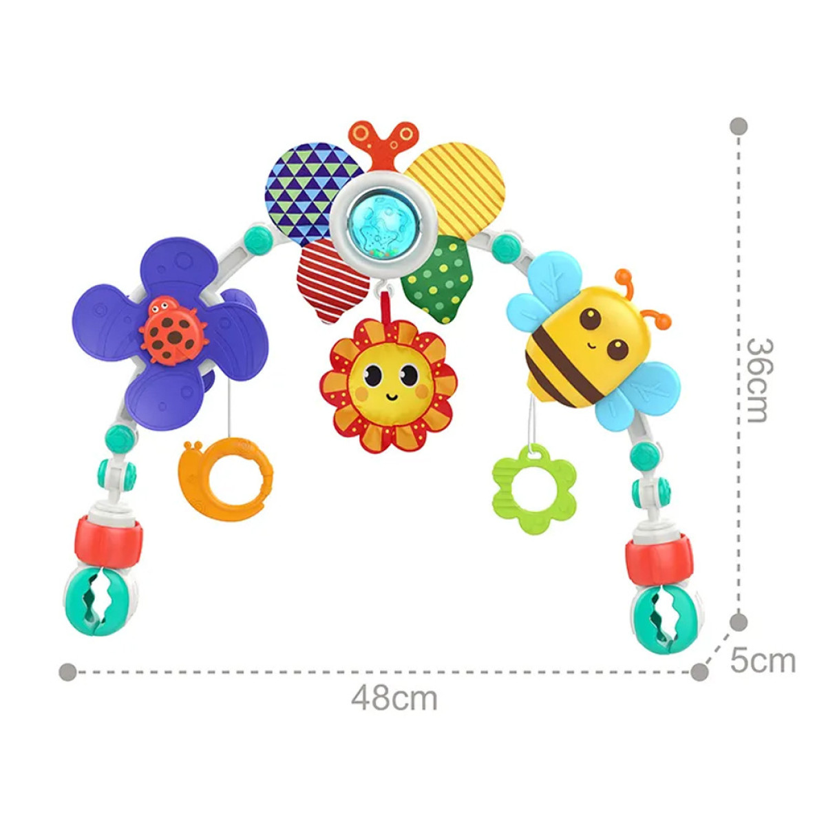 Värviline mängukaare käru, kiige ja lamamistooli jaoks on suurepärane valik igale väikelapsele. Lihtne paigaldada ja reguleeritava kaldenurgaga mängukaar võimaldab seda kohandada igale lapsele sobivaks. Mängukaarele kinnitatud värvilised mänguasjad kutsuvad lapsi haarama ja käsi sirutama, arendades keskendumisvõimet ning kujutlusvõimet. Kaarele riputatud mänguasjad soodustavad lapse motoorika ja täpsete liigutuste arengut ning meelte stimuleerimist. Mängu ajal õpib laps eristama kujundeid ja värve.