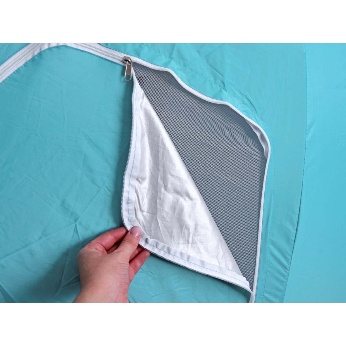 Chalkidiki Para Sole UPF 50+ hoolitseb teie mugavuse eest. Varjul on kaks sääsevõrguga akent ja ventilatsiooniavad, mis tagavad suurepärase õhuringluse. Lisaks võimaldavad sisetaskud hoida jooke, toitu ja muid pisiasju.