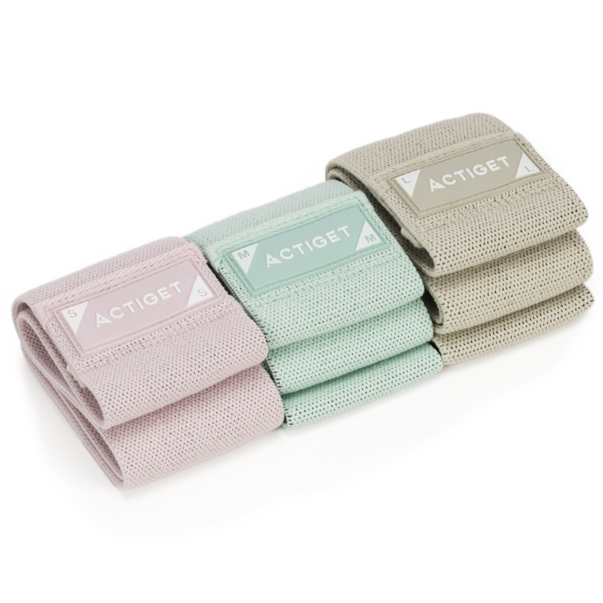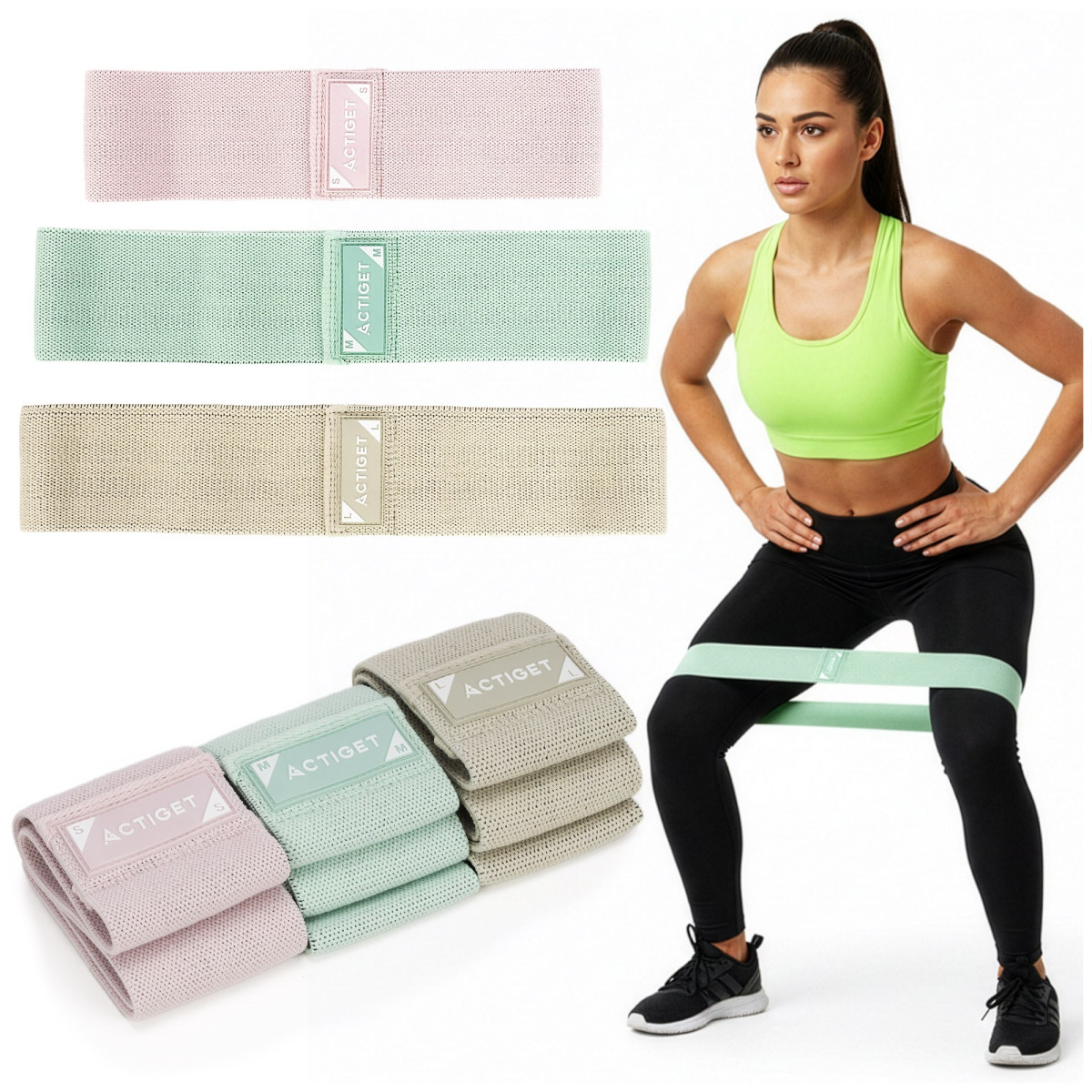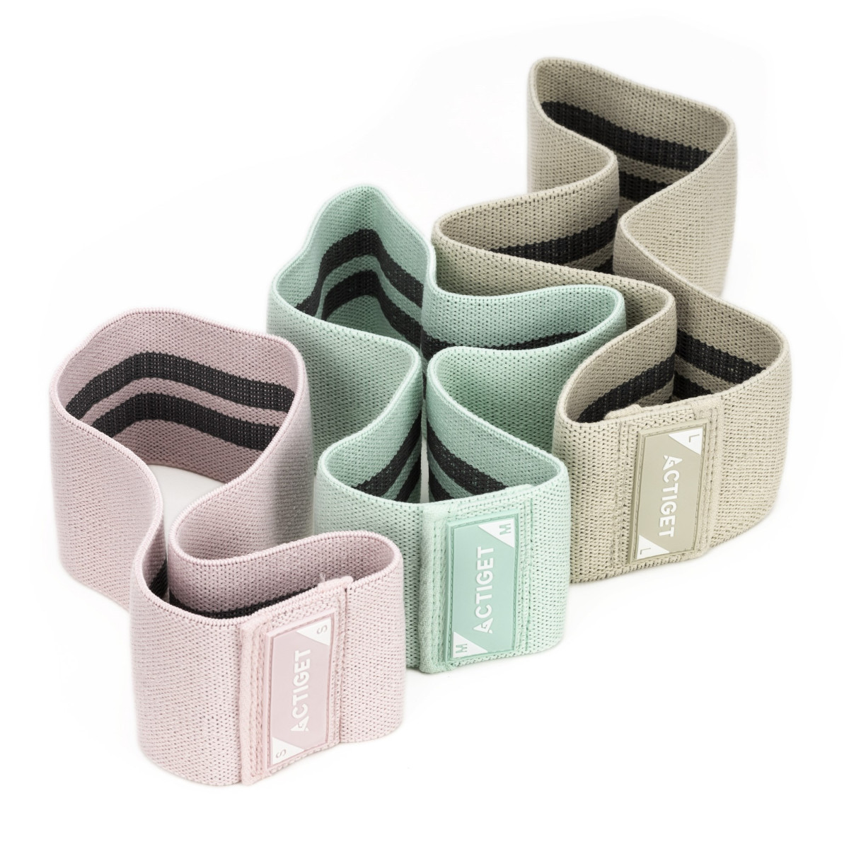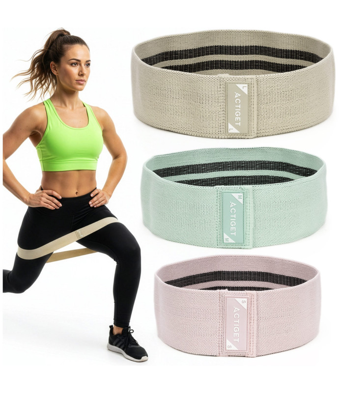 Kaubamärk: Actiget® Seeria: naistele mõeldud seeria Materjal: polüester, lateks Värv: puuderroosa, mündiroheline, beež, hall Sertifikaat: CE Komplekt sisaldab: 1 x vastupanukumm (S) 1 x vastupanukumm (M) 1 x vastupanukumm (L) 1 x nööriga kott Mõõtmed: Roosa vastupanukumm (S) Pikkus ilma venitamata: 33 cm Ümbermõõt: u 66 cm Laius: 8 cm Paksus: 0,3 cm Vastupanu: 8–14 kg Mündiroheline vastupanukumm (M) Pikkus ilma venitamata: 38 cm Ümbermõõt: u 76 cm Laius: 8 cm Paksus: 0,3 cm Vastupanu: 13–22 kg Beež vastupanukumm (L) Pikkus ilma venitamata: 43 cm Ümbermõõt: u 86 cm Laius: 8 cm Paksus: 0,3 cm Vastupanu: 21–31 kg Nööriga kott Pikkus: 28 cm Laius: 13 cm Paksus: 4,5 cm Lisainfo: Tootel on Actiget® logo