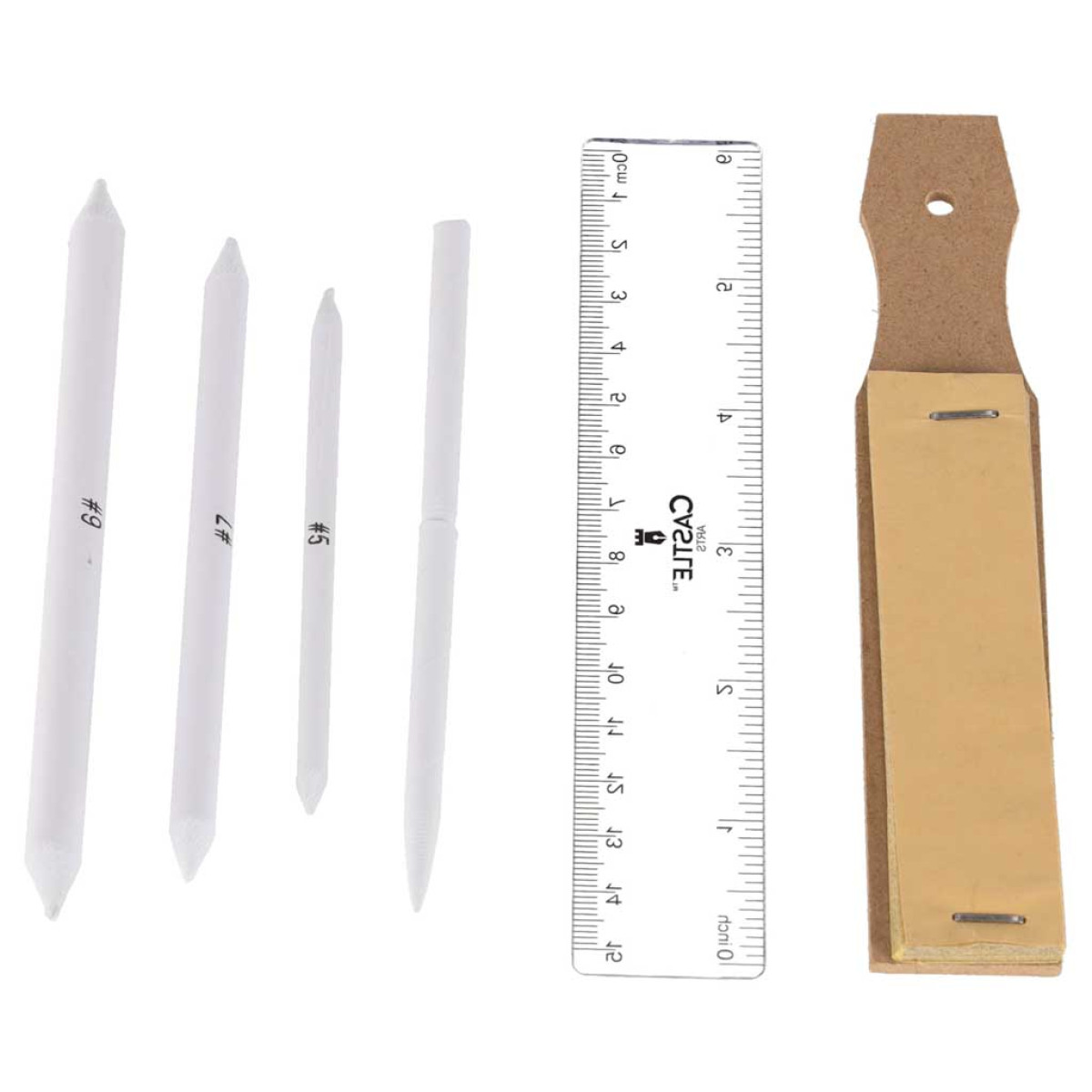 - Grafiitpliiatsid (12B, 10B, 8B, 6B, 5B, 4B, 3B, 2B, B, 2x HB, F, H, 2H, 3H, 4H, 5H)