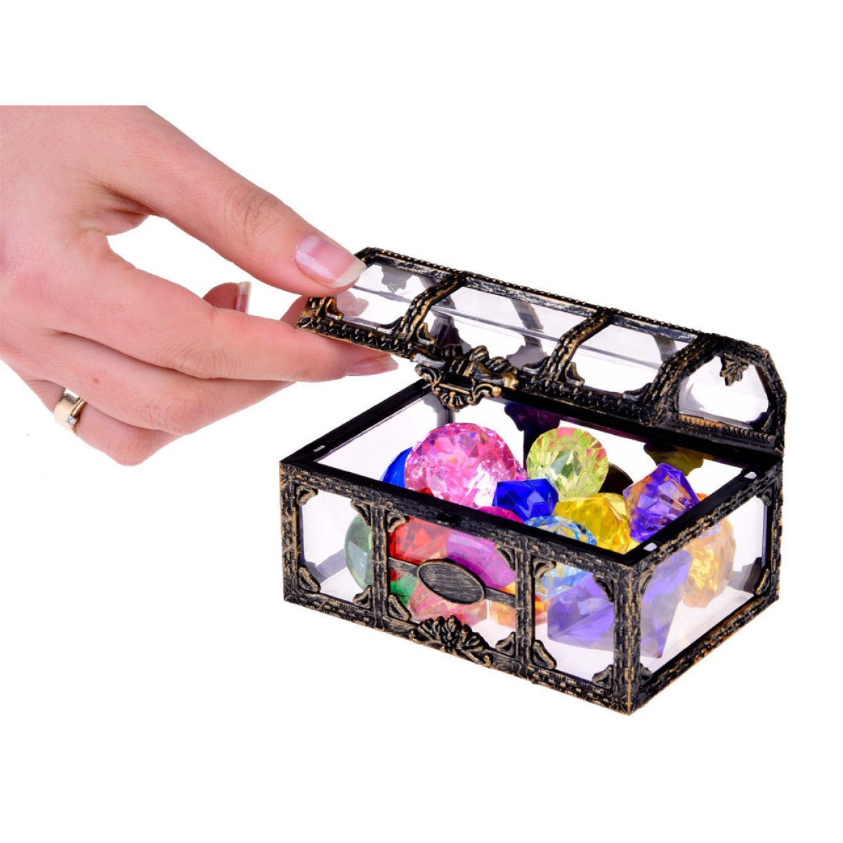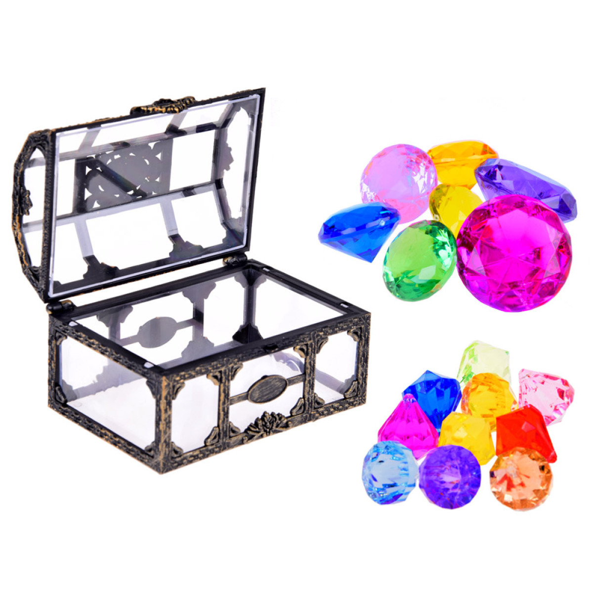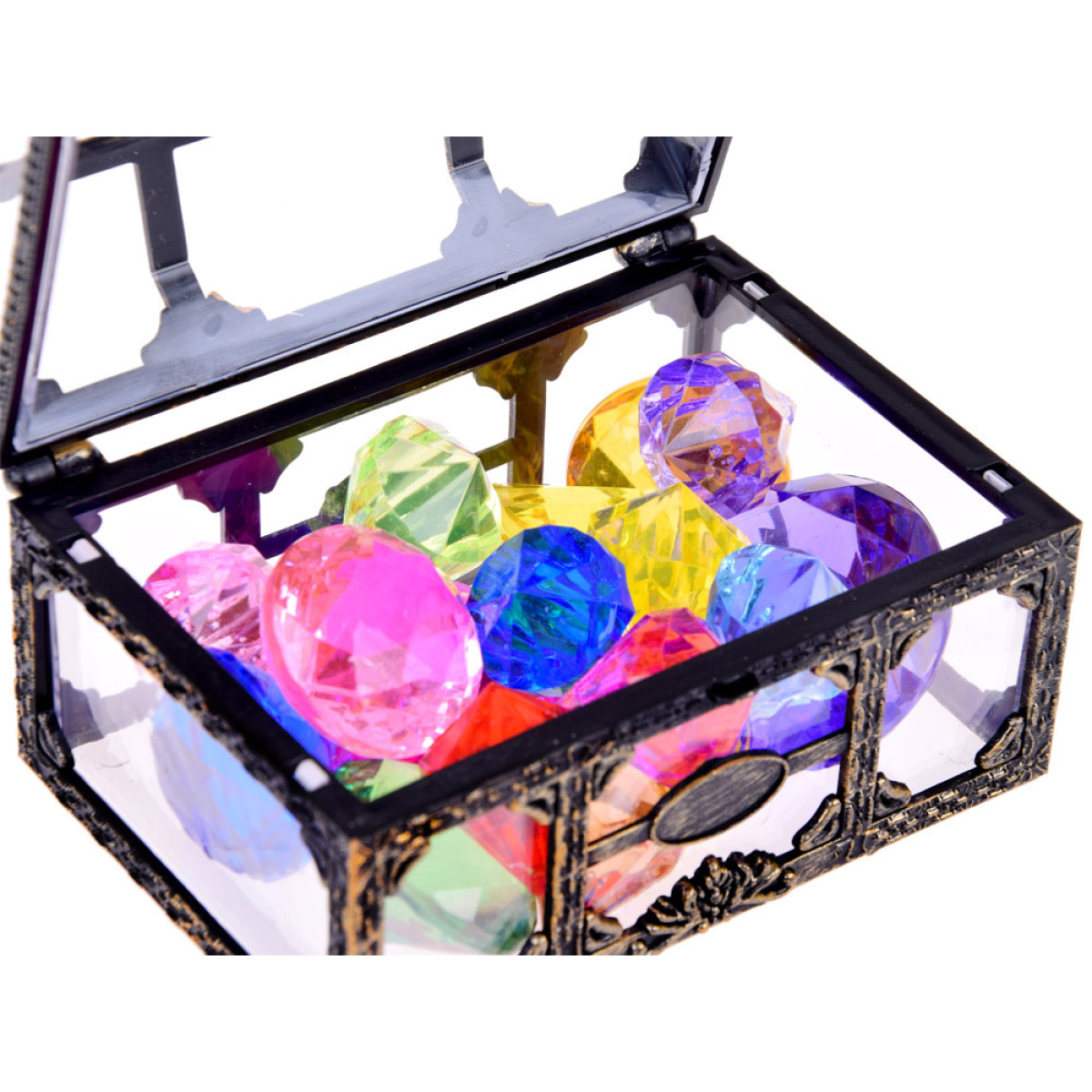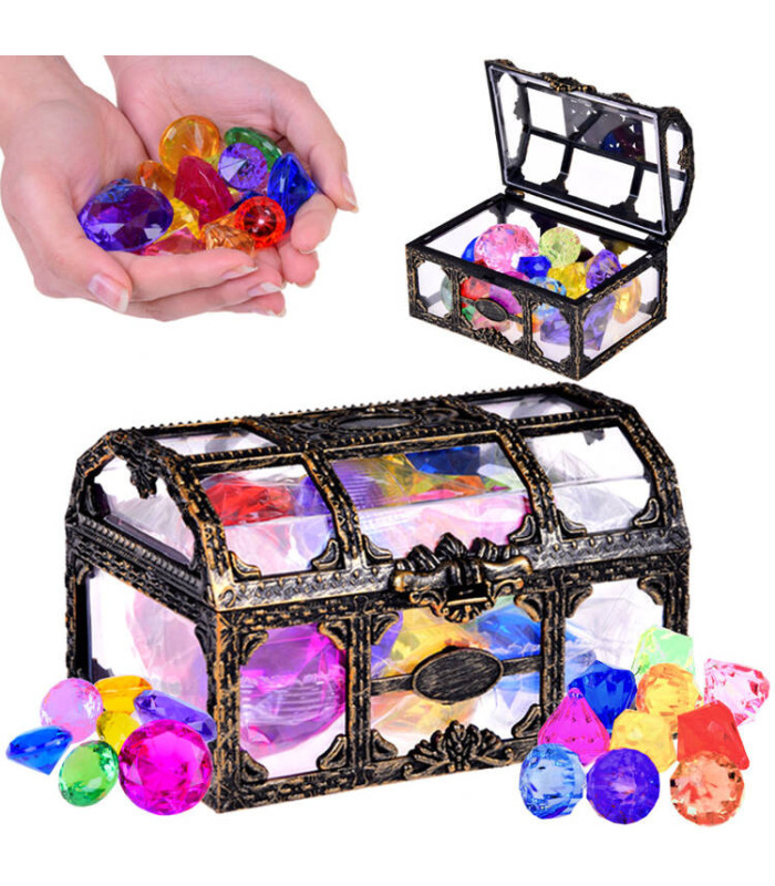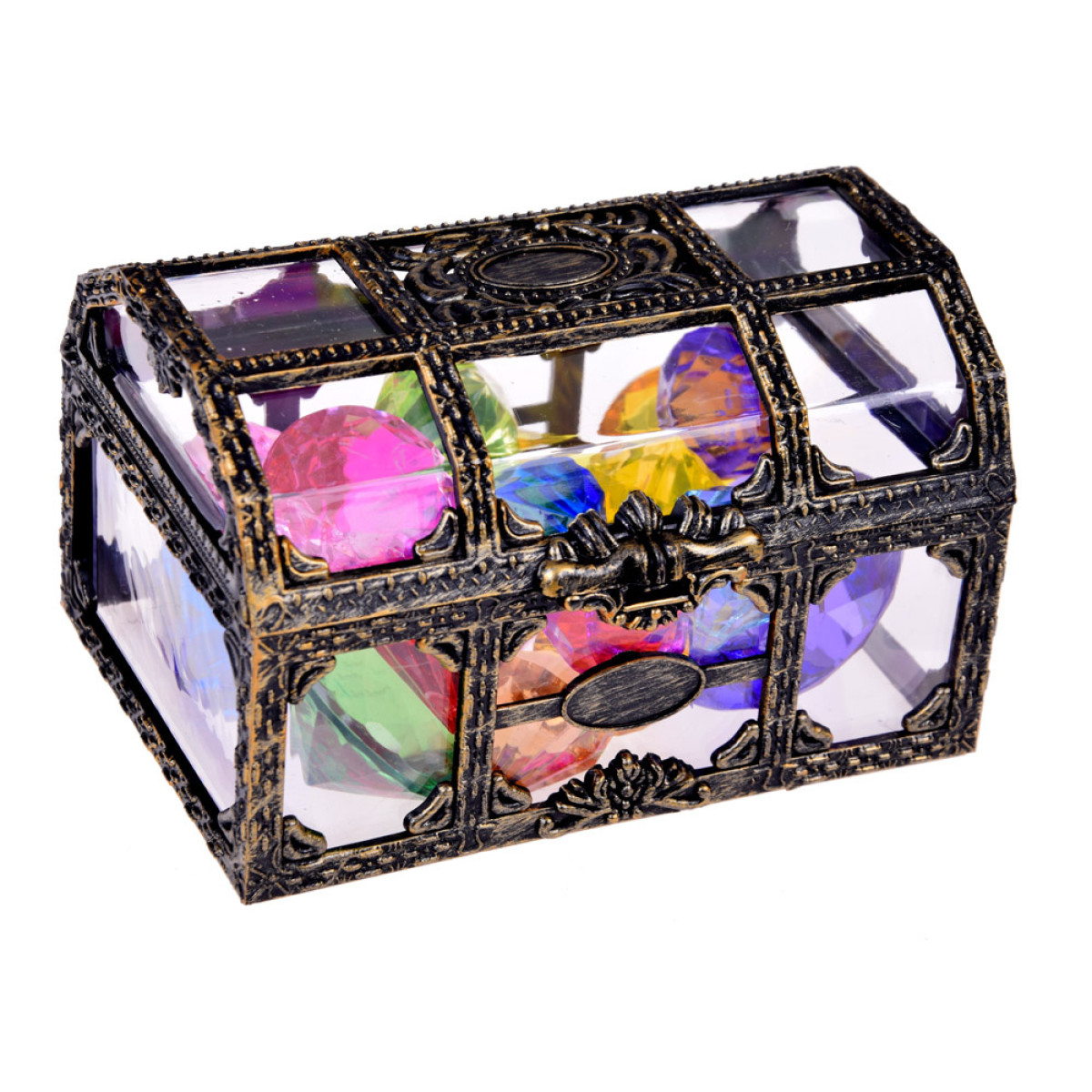 Piraadi aarete rinnak on ideaalne mängimiseks piraatide, aardeotsijate või kõigile, kes armastavad sära ja läike! Mängukast sisaldab 17 värvilist kristalli erinevates suurustes, mida tuleb kaitsta soovimatute külaliste eest. Toode on täielikult valmistatud plastist, sealhulgas ka väärtuslikud kivid, mistõttu saab sellega mängida ka vees, ilma et see roostetaks! Soovitame visata kristallid basseini või vanni põhja ja sukelduda nende järele! Teine seiklustee on peita aarete rinnak aeda või majja ning joonistada kaart aardeteekonna leidmiseks.