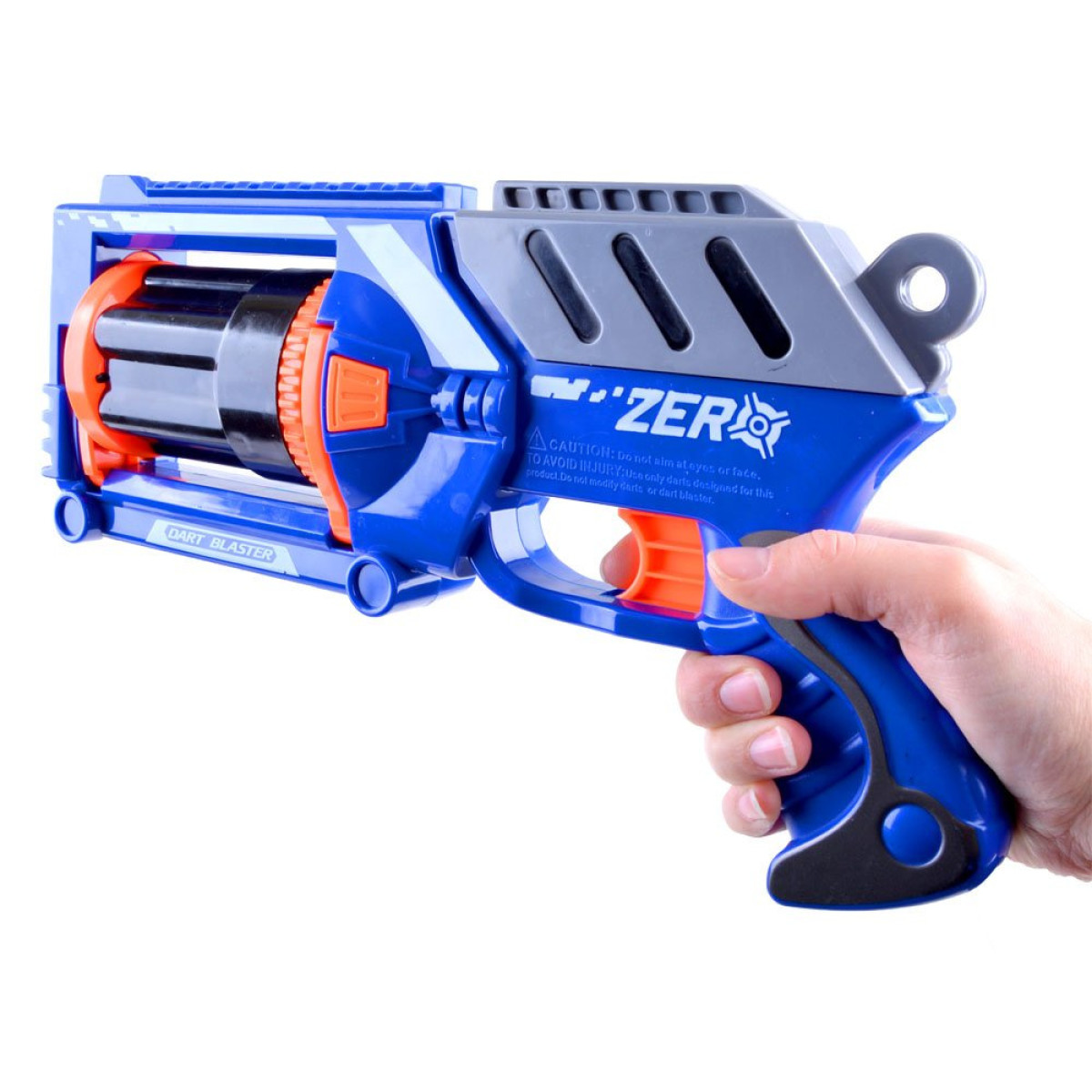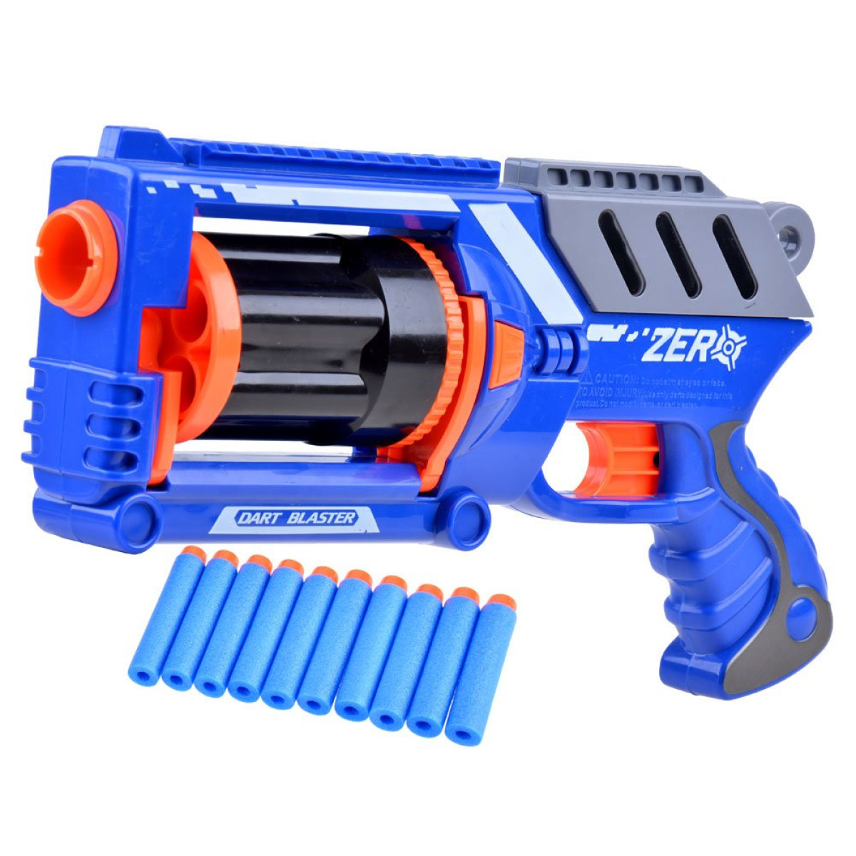 Plastikust püstol Blaster koos 10 vahtkuuliga võimaldab igaühel korraldada põnevaid laskmismänge sõpradega. Mugav mänguasi vahtkuulidega pakub palju lõbu nii kodus kui ka värskes õhus. Kuulid laetakse otse salve, mis vabaneb püstoli vasakult küljelt oranži nupu vajutamisel.