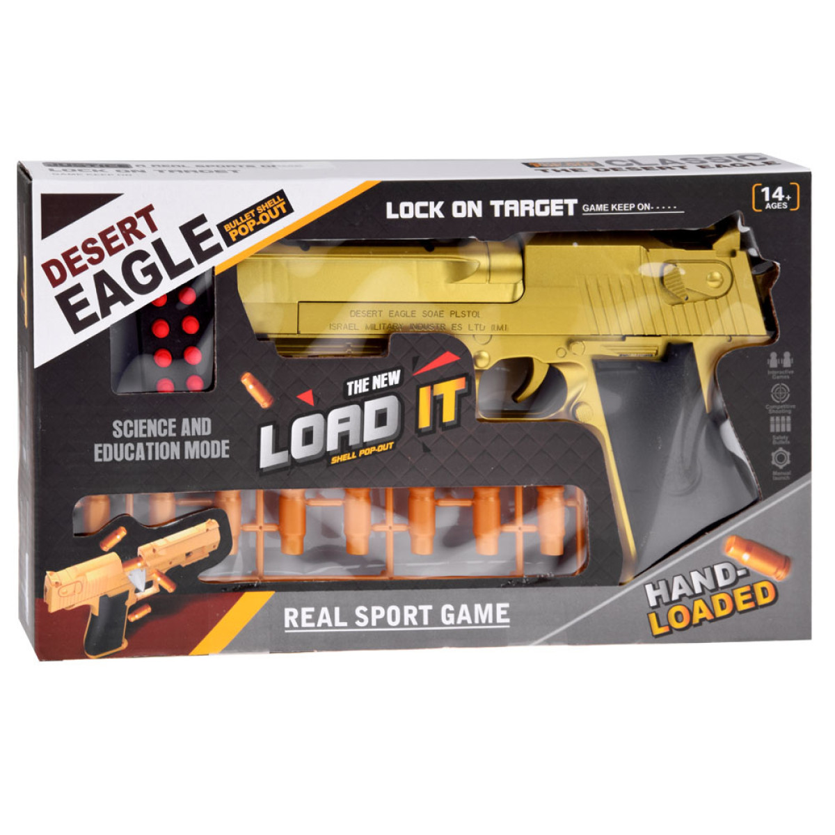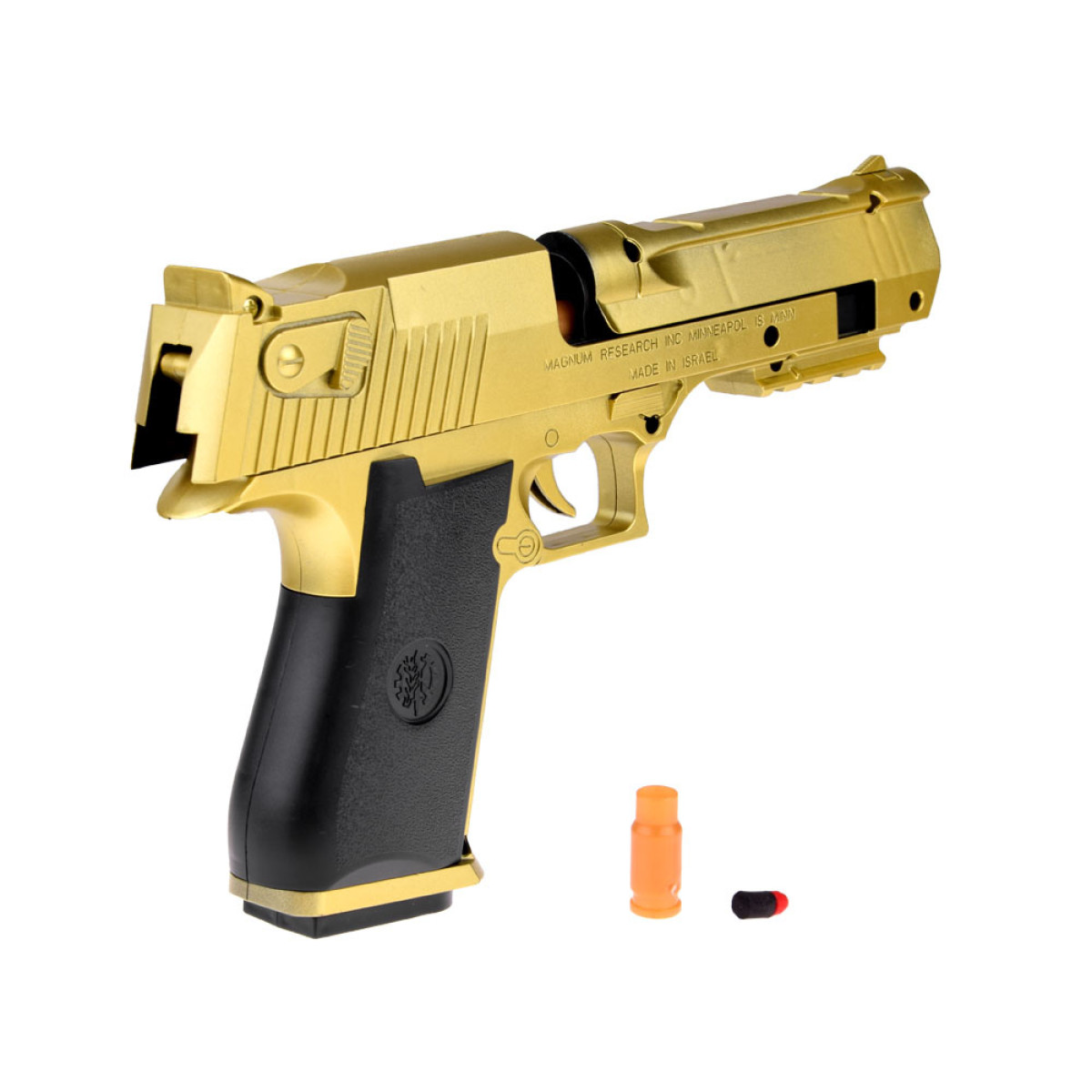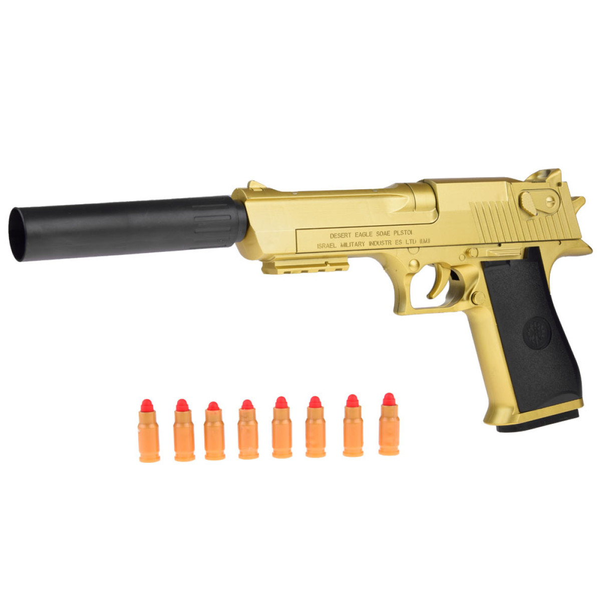 Realistliku välimusega püstol pehmete vahtkuulidega köidab kindlasti nii väikeste kui ka suurte tähelepanu. Kes ei armastaks laskemängusid? Sellise püstoliga saate tunda end nagu Ameerika filmis. Püstol on varustatud summutiga, mis muudab mängu atraktiivsemaks. Lisaks visatakse laskmise ajal kestad välja, mis muudab mängu realistlikumaks. Püstoli käepidemes on salv, mis nupuvajutusega välja hüppab. Püstol on valmistatud plastikust, samas kui kuulid on pehmest vahust. Käepideme karedal pinnal püsib püstol kindlalt käes ning tänu vedrumehhanismile tuleb püstolit iga lasu järel uuesti laadida, mis muudab iga lasu läbimõeldud.