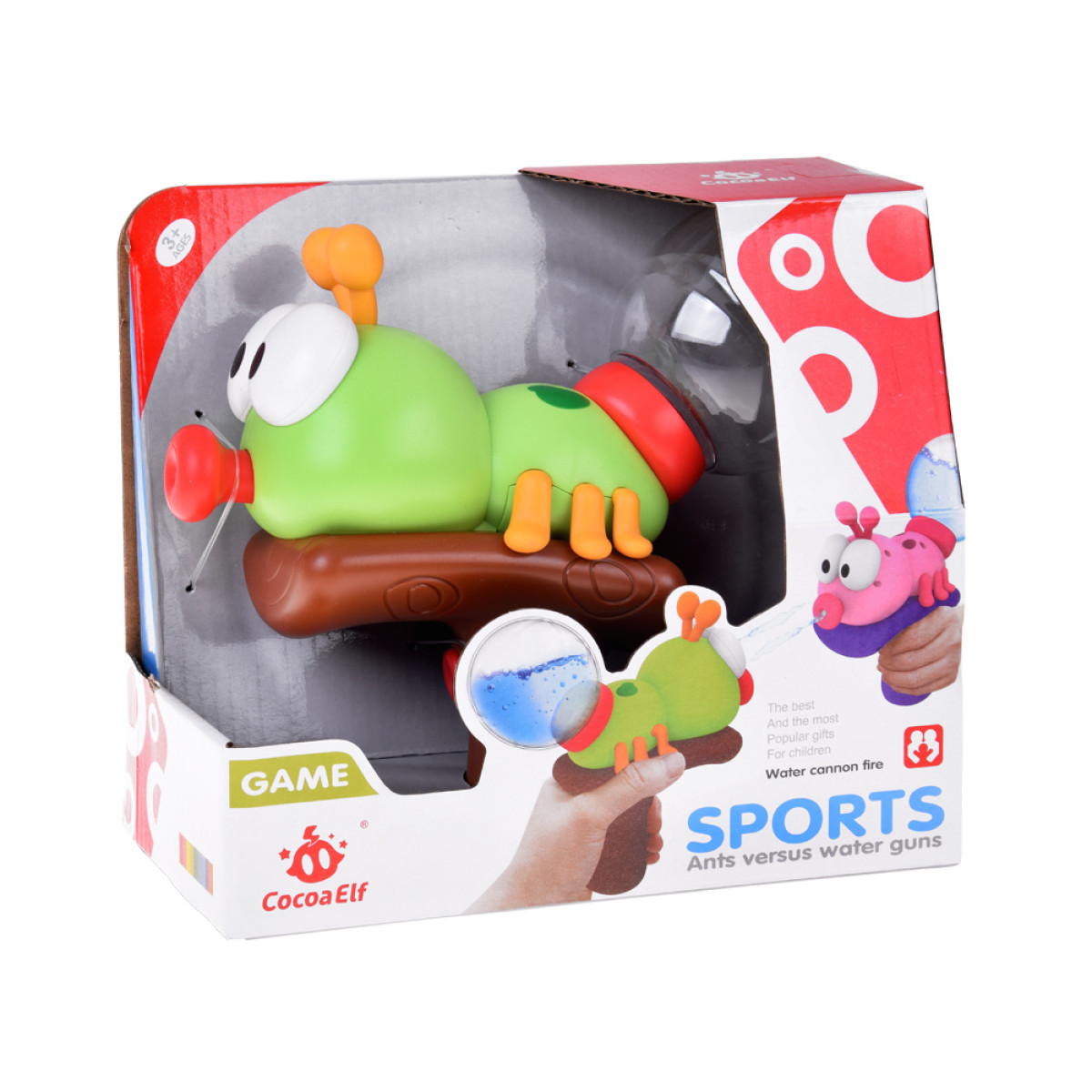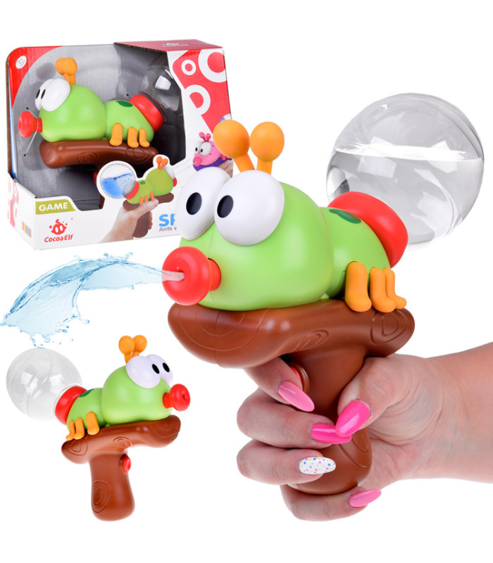 Veepüstol köidab tähelepanu tänu muinasjutulisele välimusele - naljakas ussike on suurte silmade, armsate tundlate ja avatud suudega, millest veepritsimisel voolab välja vesi. Kogu komplekt on paigutatud mugavale, värvilisele käepidemele, mis toimib nii hoidiku kui ka veega tulistamise päästikuna.
