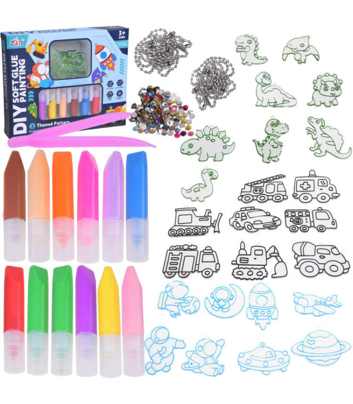 Loo oma isiklikud võtmehoidjad meie loomingulise komplektiga väikestele kunstnikele! See viib teie lapse kosmosesse, eelajalukku või autode maailma.