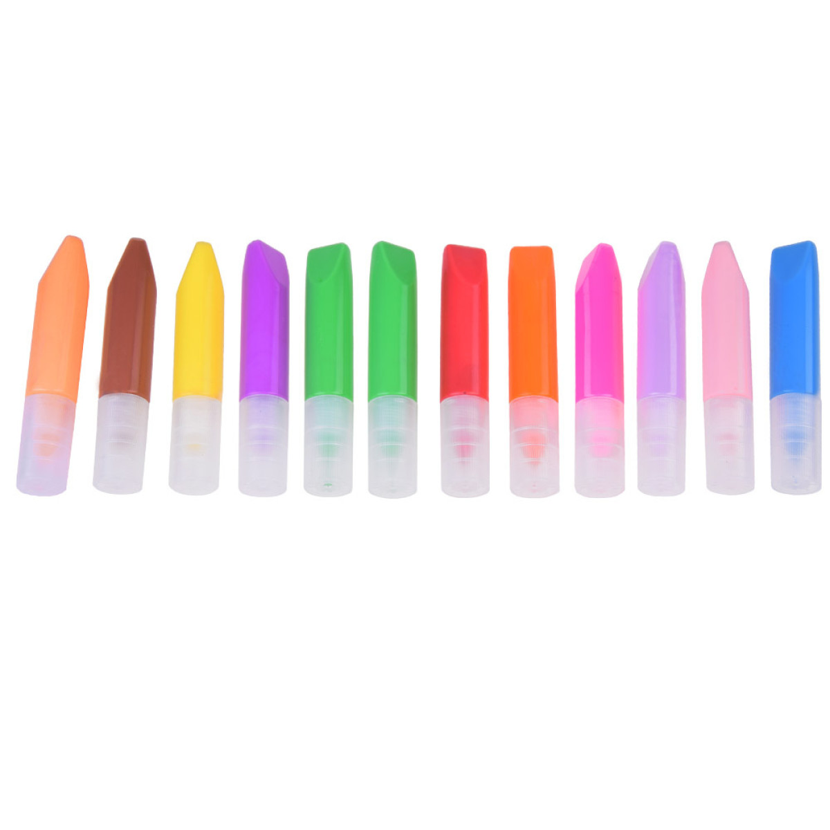- 12 värvi: sinine, 2 x roheline, oranž, roosa, helelilla, helepunane, pruun, lilla, beež, punane, kollane