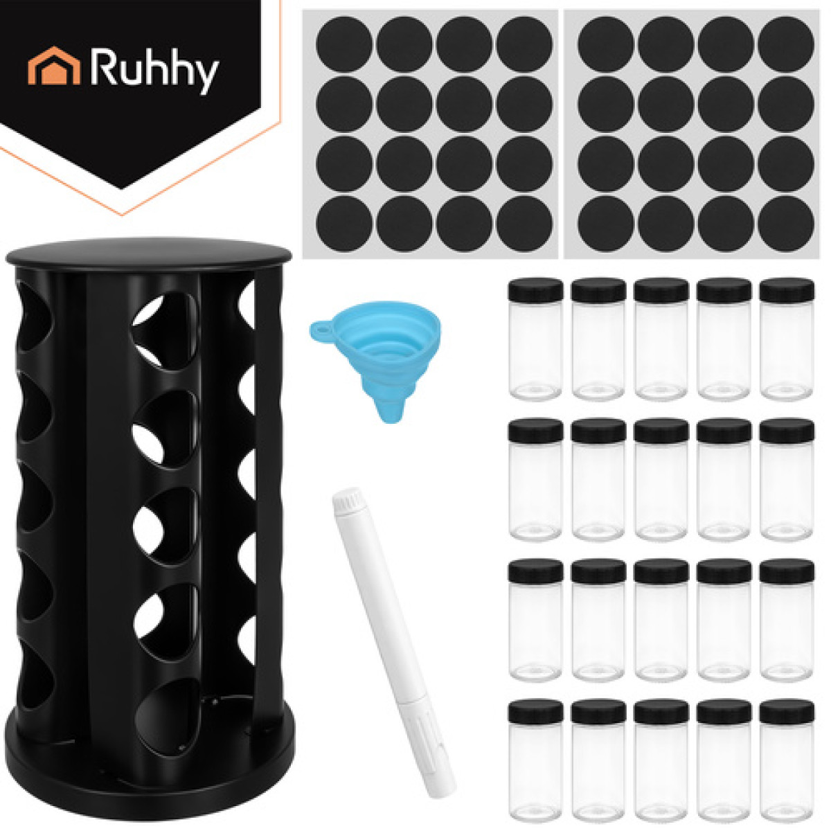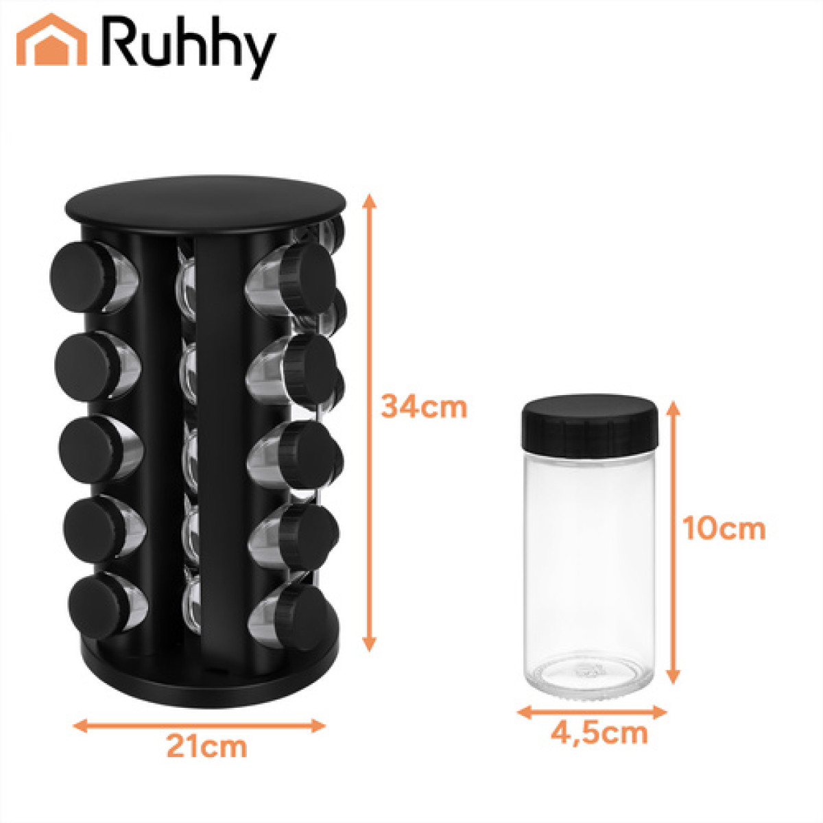 Ruhhy maitseainepurkide komplekt on praktiline ja elegantne lahendus köögi korrastamiseks, et kõik maitseained oleksid alati käepärast. Pöörlev alus ja täielik komplekt muudavad toiduvalmistamise mugavamaks, kiiremaks ja lihtsamaks. Tegemist on Poola kaubamärgi tootega, mis tagab hea kvaliteedi, vastupidavuse ja turvalise kasutamise.