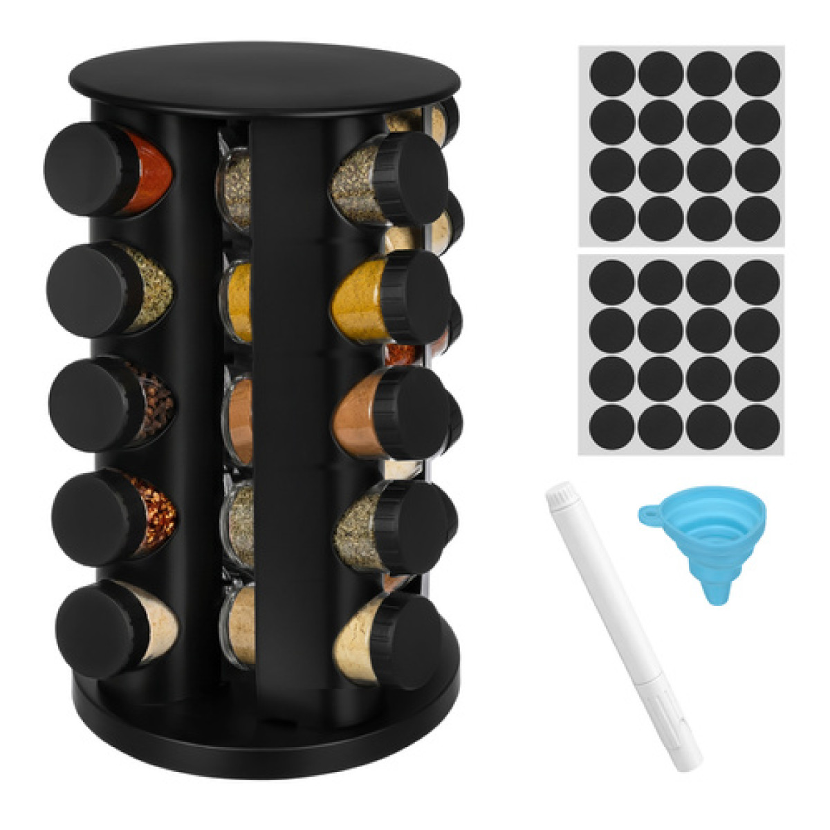 See maitseainepurkide komplekt aitab hoida köögi korras ja muudab maitseainete kasutamise igapäevaselt lihtsaks. Pöörlev maitseainehoidja säästab ruumi ning annab köögile puhta ja korrastatud ilme.