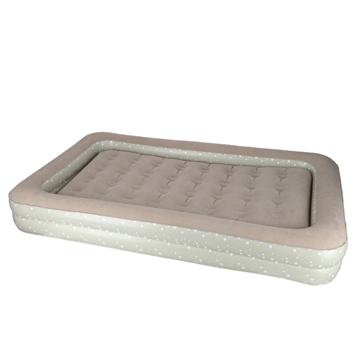 Laste täispuhutav madrats on praktiline ja mugav. Kasutuses on kaheastmelised ventiilid, mis hõlbustavad pumpamist ja takistavad õhu kiiret väljumist. Madrats on valmistatud vastupidavast PVC materjalist – pealispind meenutab pehmet veluuri ning külgedel on tähekujuline muster.