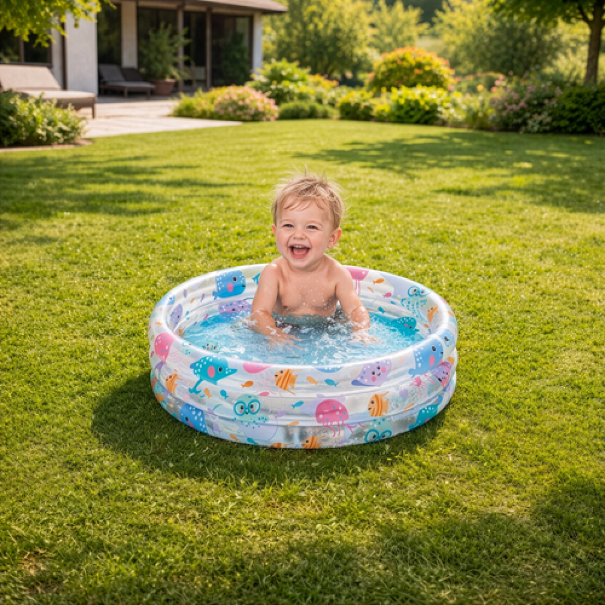 See laste bassein on hea valik väikesele lapsele, kes soovib kuumadel päevadel turvaliselt veega mängida. Sobib kasutamiseks ainult täiskasvanu järelevalve all.