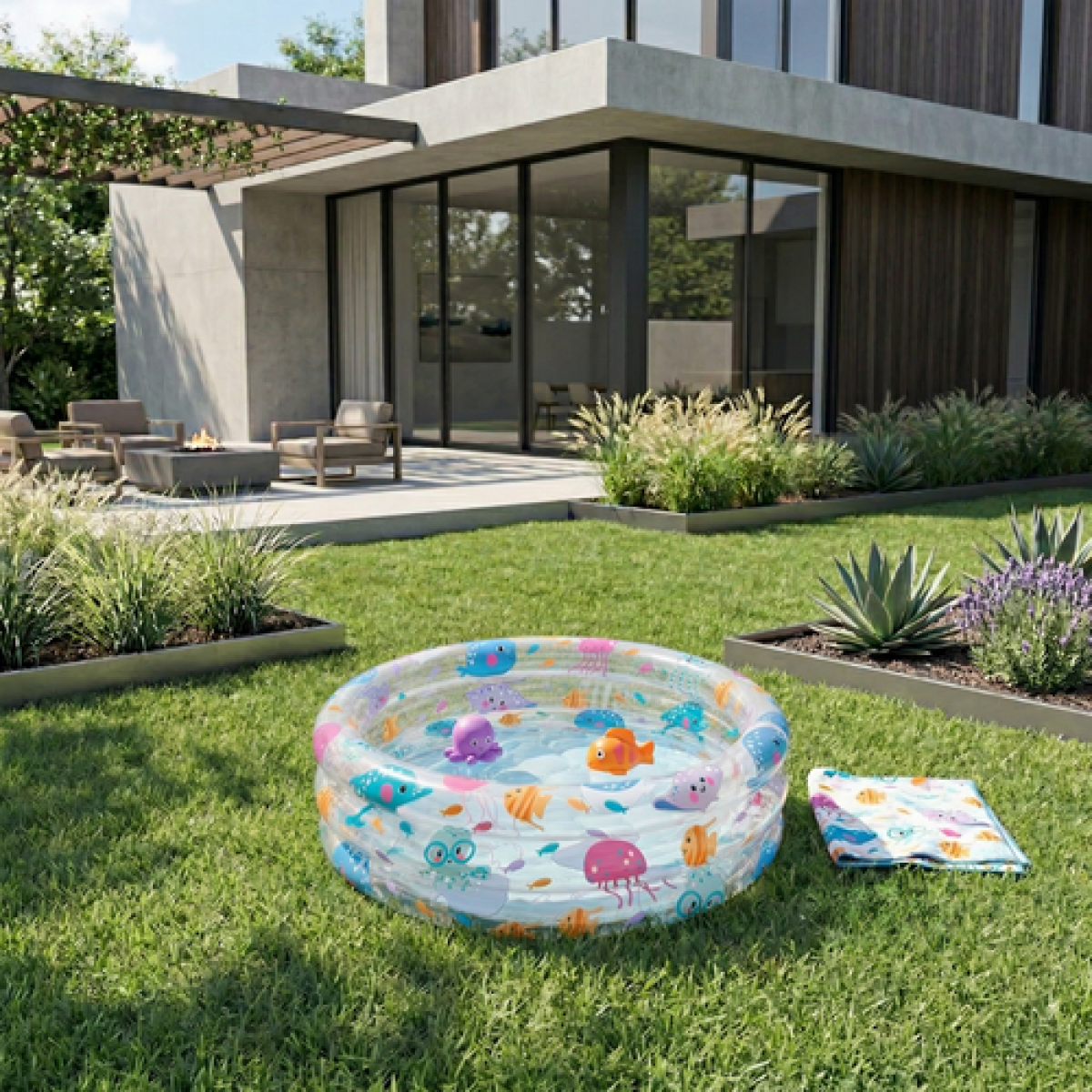 täispuhutav laste bassein aitab luua väikese jahutava mänguala ilma suure basseini või väljasõiduta. See on praktiline lahendus vanematele, kes soovivad pakkuda lapsele turvalist veerõõmu kodustes tingimustes. Madal kõrgus muudab sisse ja välja liikumise lihtsamaks ning kompaktne kuju sobib hästi väiksematesse kohtadesse.