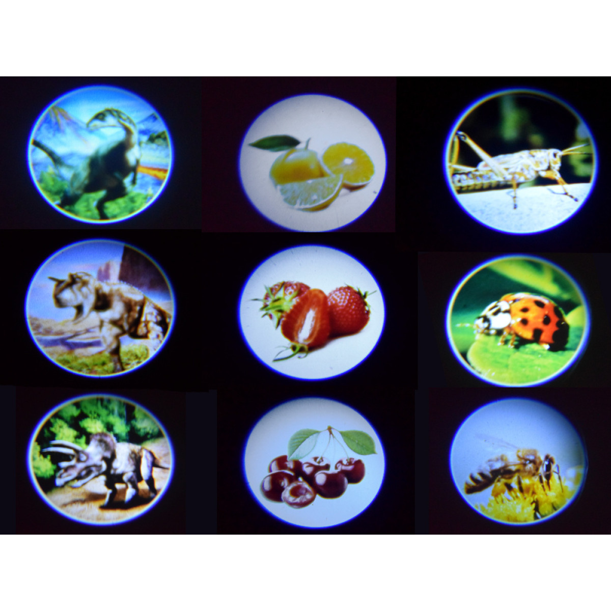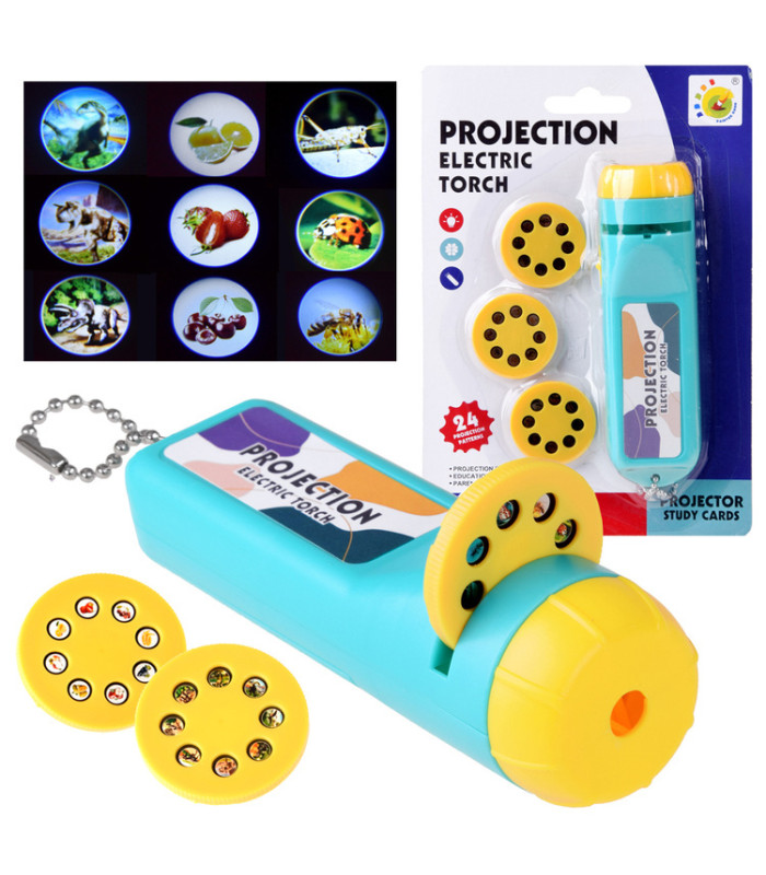 See projektor lastele kuvab värvilisi pilte pimedas. Tänu oma väikesele suurusele on see käepärane ja alati kaasaskantav. Sobib hästi magamistoas uinumiseks, telkimiseks või vanaema ja vanaisa juures nädalavahetuse veetmiseks. Käsiprojektor sobib õhtusteks mängudeks, lugude jutustamiseks ja oma lugude loomiseks. Kolm slaidikettaga lisavad huvi ja muudavad mänguasja kauakestvaks. Iga ketas sisaldab 8 erineva teemaga pilti: esimesel on dinosaurused, teisel putukad ja kolmandal puuviljad. Ilma slaide kasutamata toimib see taskulambina, et valgustada pimedates ruumides.