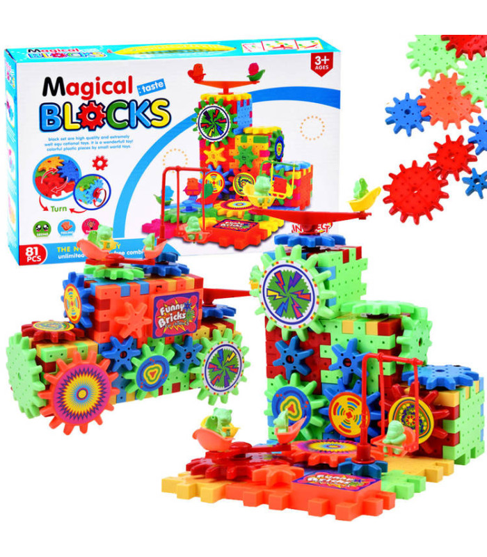 Tänu erinevatele kujunditele ja ühendamise võimalustele saavad lapsed luua erinevaid ehitisi ja konstruktsioone – alates lihtsatest hoonetest kuni keeruliste, pöörlevate struktuurideni. Komplekti kuuluvad hammasrattad, mida saab omavahel ühendada, luues liikuvad mehhanismid, mis pakuvad piirituid mänguvõimalusi ja arendavad kujutlusvõimet.