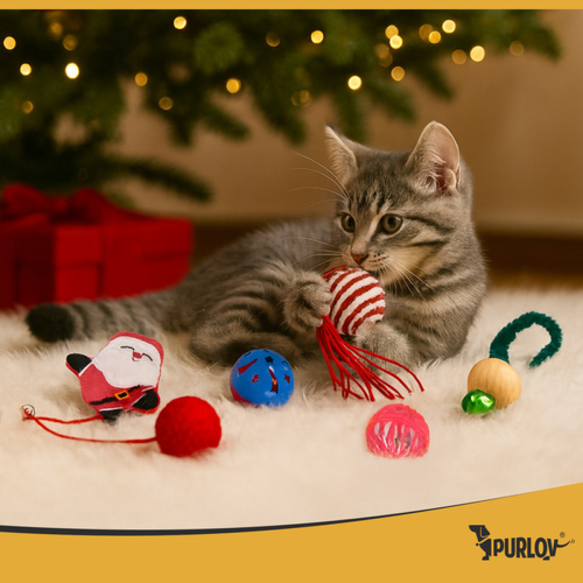 PURLOV kačių žaislai, kalėdinių žaislų rinkinys 6 vnt. kamuoliukų, spyruoklių, pompono!