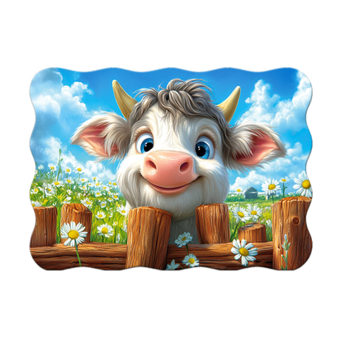 Pärast 30 täpselt sobiva tüki kokkupanemist moodustub pilt mõõtmetega 32 × 23 cm, kujutades armsat lehma värvilises ja sõbralikus maailmas. Ideaalne noortele loodusesõpradele ja muinasjutulistele illustratsioonidele.