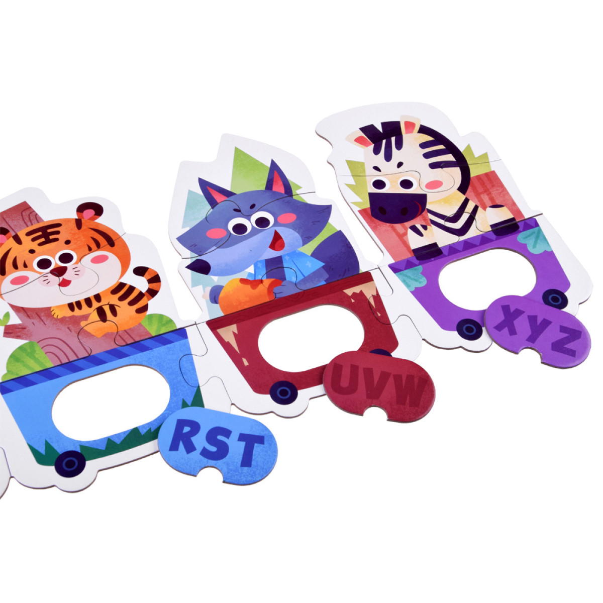 Viige oma laps lõbusale ja värvikale reisile tähtede ja loomade maailma selle ainulaadse haridusliku puslekomplektiga rongi kujul! Iga vagun on üks täht tähestikust ja armas värviline loom, kelle nimi algab antud tähega. See on ideaalne kombinatsioon õppimisest ja mängust.