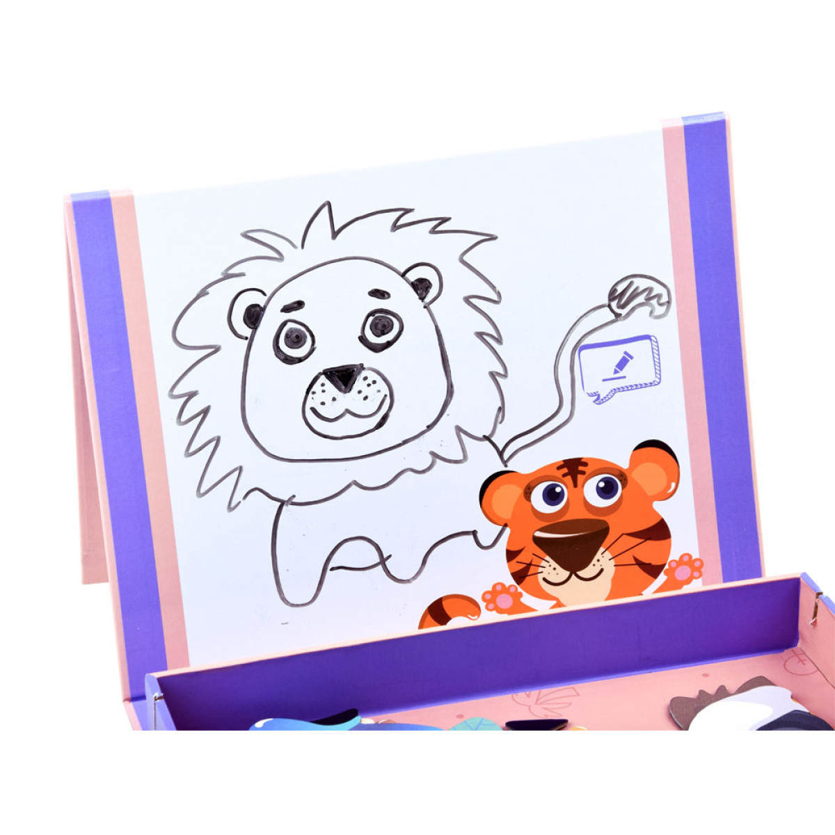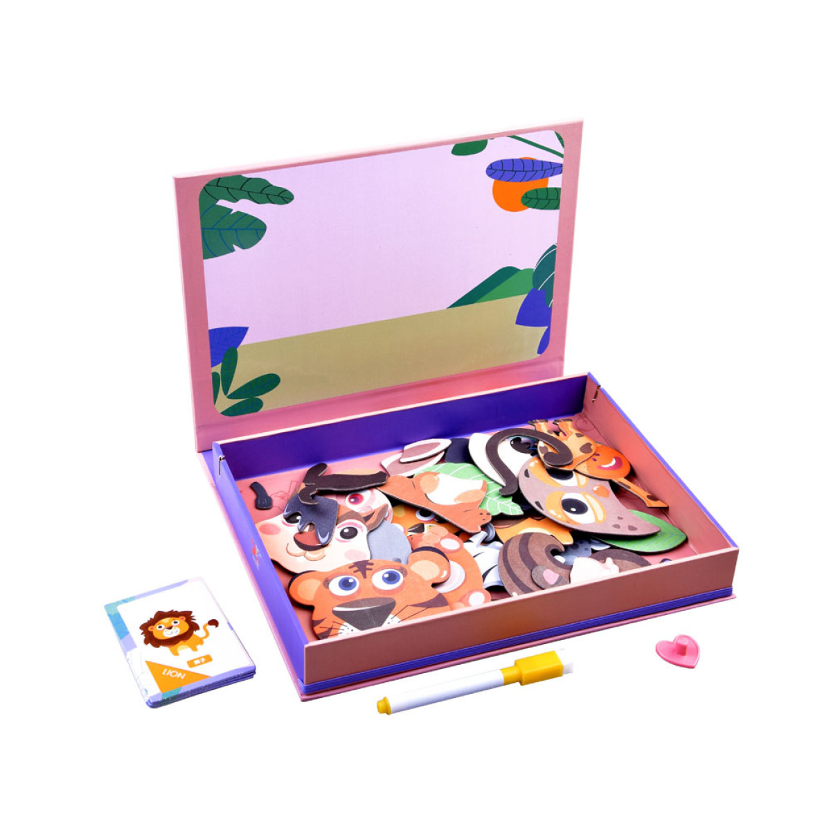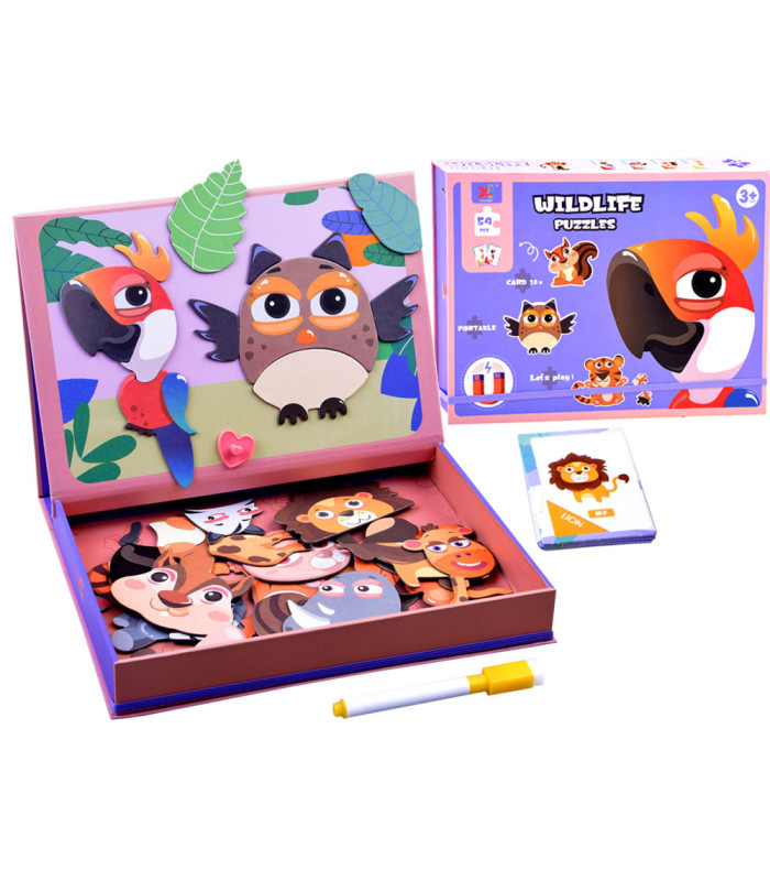 Magnetilised loomapildid on suurepärane mäng nii tüdrukutele kui poistele. Komplekt sisaldab värvilisi magneteid, mida saab asetada magnettahvlile, võimaldades mängimist isegi reisi ajal. Pusle pakub palju võimalusi - lisaks magnetpusledele saab kasutada lahtikäivat tahvlit joonistamiseks või loomakujutiste jäljendamiseks kaasasolevatelt 10 kaardilt.