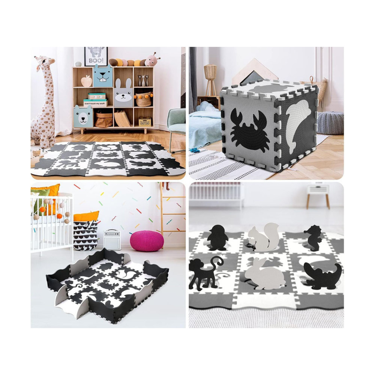 Beebide ja laste jaoks mõeldud vahtpadi - must-valge, harivad pusled