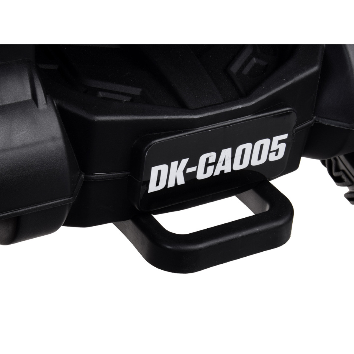 Quad on rikkalikult varustatud – leiad sealt LED-paneeli muusika ja USB-sisendiga, efektse LED-valgustuse ees ja taga ning pehme kaheistmelise kunstnahast turvavöödega istme. Ergonomiline rool koos kaitsetega tagab mugava ja kindla juhtimise. See mugav quad täidab iga väikese juhi ootused – ühendab realistliku välimuse, funktsionaalsuse ja turvalisuse, pakkudes lastele unustamatuid mänguhetki värskes õhus.