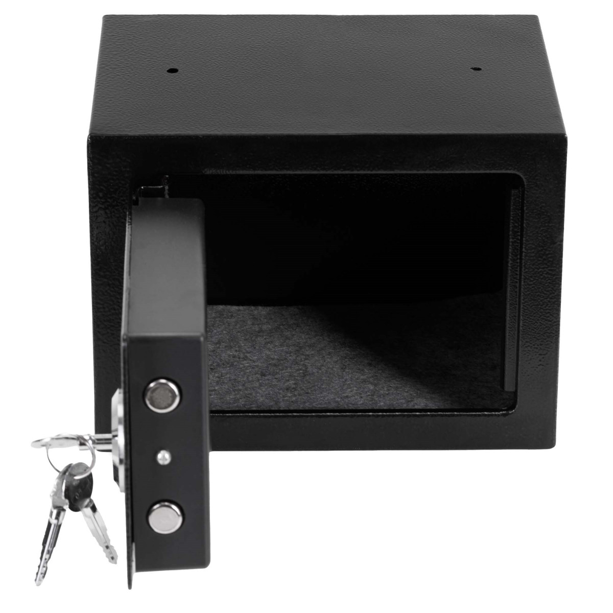 Kaubamärk: Springos® Värv: must Vildist mati värv: hall Sisemise luku värv: must Materjal: pulbervärvitud metall Tüüp: võtmekapp Võtmete arv: 3 Mõõdud: Kogukõrgus: 17 cm Kogulaius: 23 cm Kogusügavus: 17 cm Sisemine kõrgus: 22.5 cm Sisemine laius: 16.5 cm Sisemine sügavus: 16.5 cm Uks Laius: 17.5 cm Kõrgus: 12.5 cm Metalli paksus: 0.4 cm Luku mõõdud sees: 15 x 11.5 x 3.5 cm Paigaldusavade läbimõõt: 1 cm Kaugus paigaldusavade vahel: 14.5 cm Tüüblite suurus: M8, pikkus 44 mm Lisainfo: Avad ja tüüblid (2) seinale või põrandale kinnitamiseks – 2 seifi taga ja 2 all Võimalus kinnitada seina ja põranda külge (tüüblid kaasas), vildist matt summutab seifi sisemust Punane indikaator luku juures on ainult värvitud ja toimib visuaalse sulgemise märgina – see ei muuda värvi võtme keeramisel OLULINE! Seif on mõeldud koduseks kasutamiseks. Hoida eemal niiskuseallikatest. Puhastada kuiva lapiga, ilma puhastusvahendeid kasutamata.