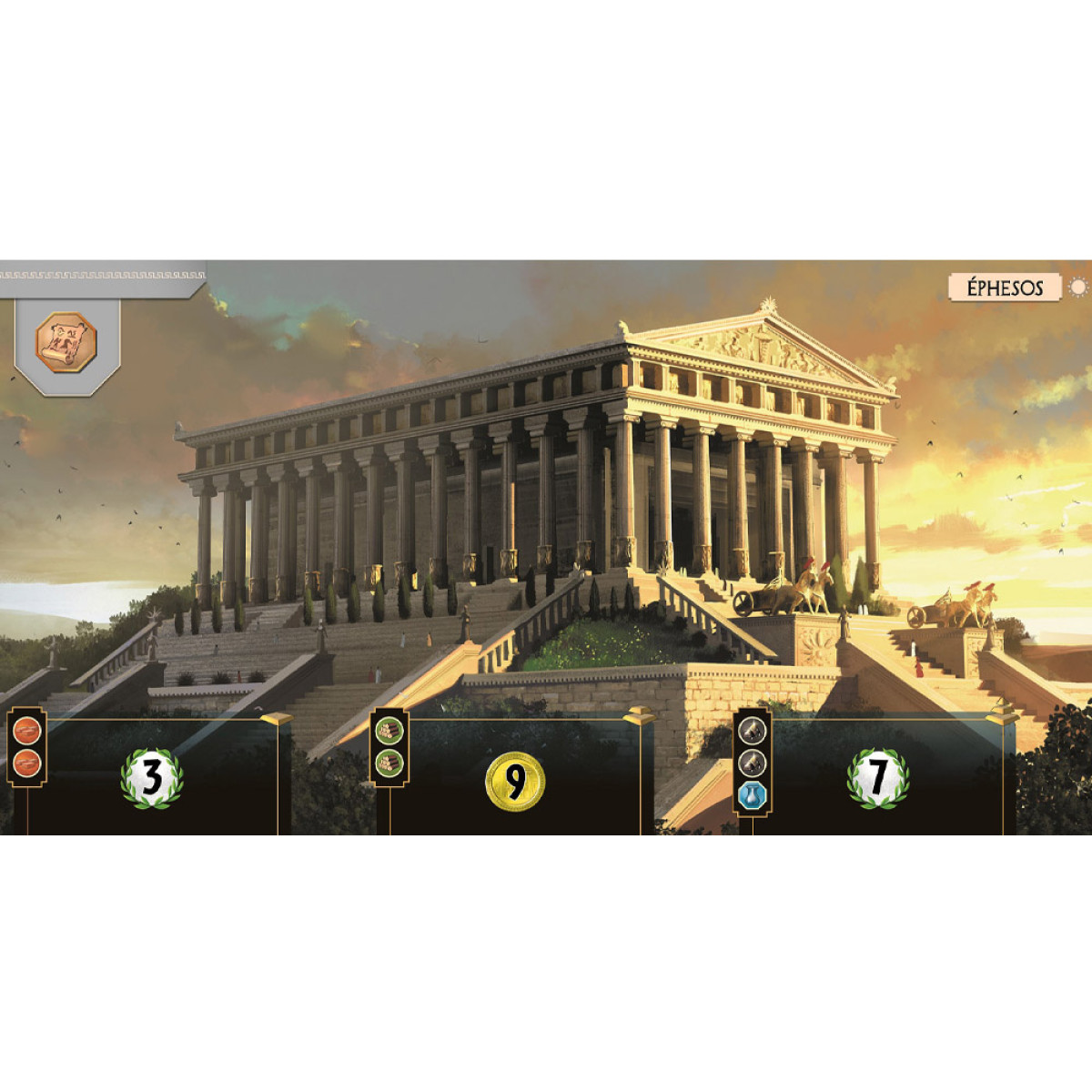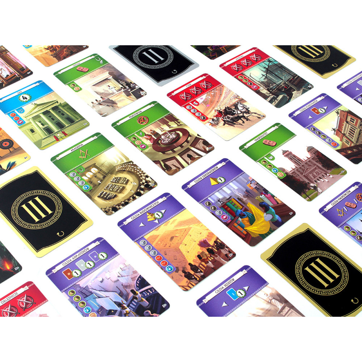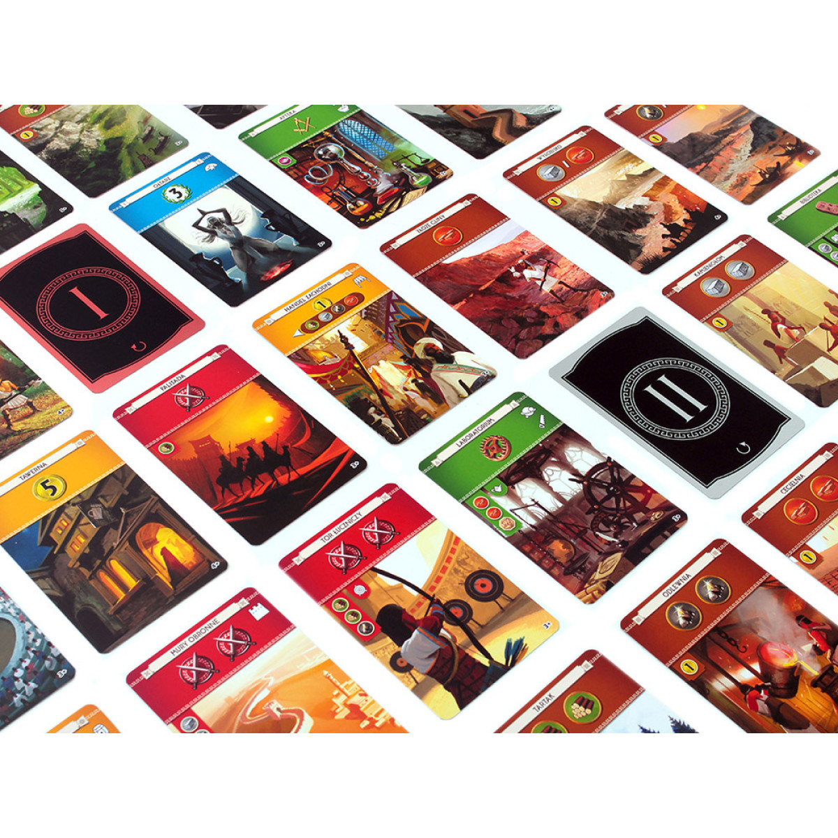 - Mängijad valivad kaarte, millel on erinevad funktsioonid, näiteks ressursid (puit, kivi, savi, kuld), tsiviilhooned, sõjalised hooned, kaubanduslikud hooned, teaduslikud hooned. Need annavad punkte, suurendavad sõjalist jõudu, võimaldavad saada ressursse teistelt mängijatelt või aitavad kaasa mängu lõpupunktidele.