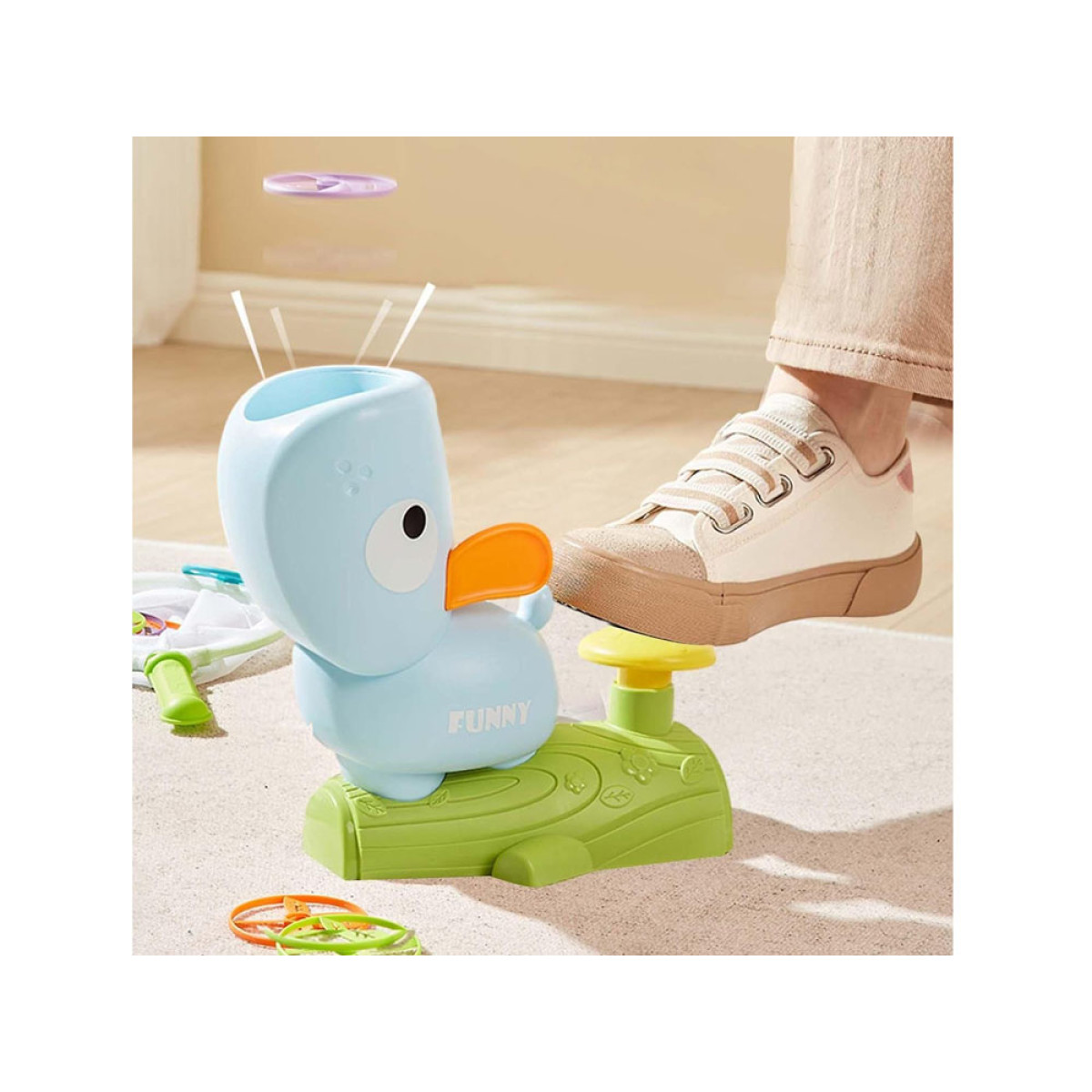 Esimesena asetage kettad pilduja sisse ja vajutage või astuge kollasele nupule. Kettad lendavad kõrgele õhku ja hakkavad pöörlema. Mängijate ülesanne on haarata neid võrgu abil, mis ei ole nii lihtne kui tundub. Mängides saate veidi võimelda, harjutada reaktsioonikiirust ja osavust. See toob kindlasti palju naeru ja lõbusat aega.