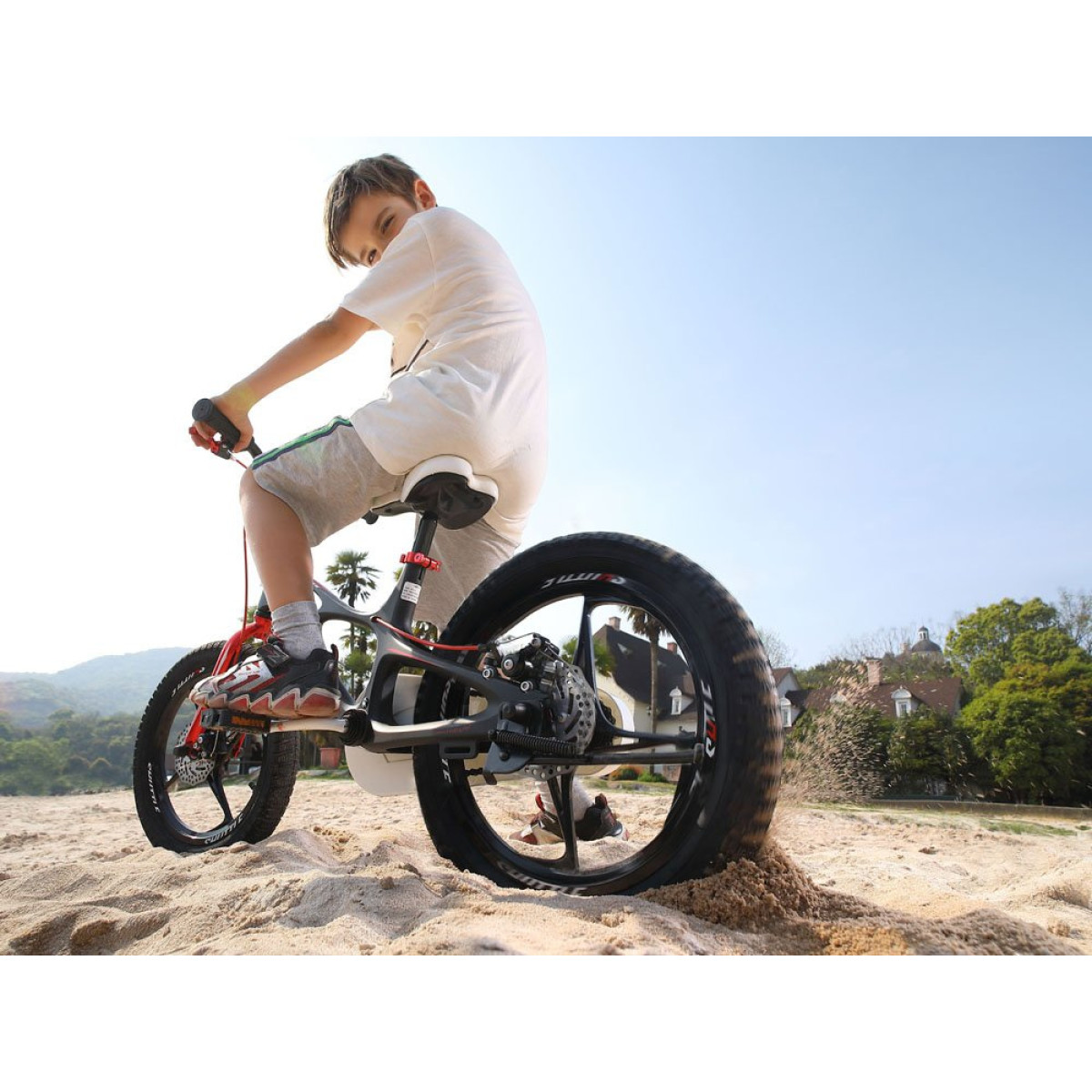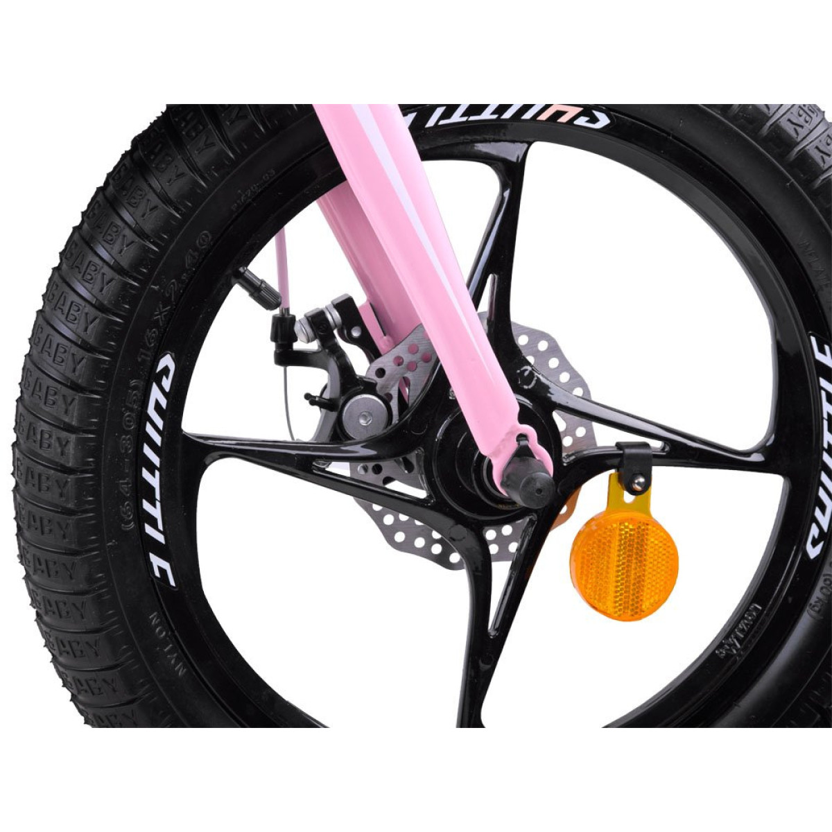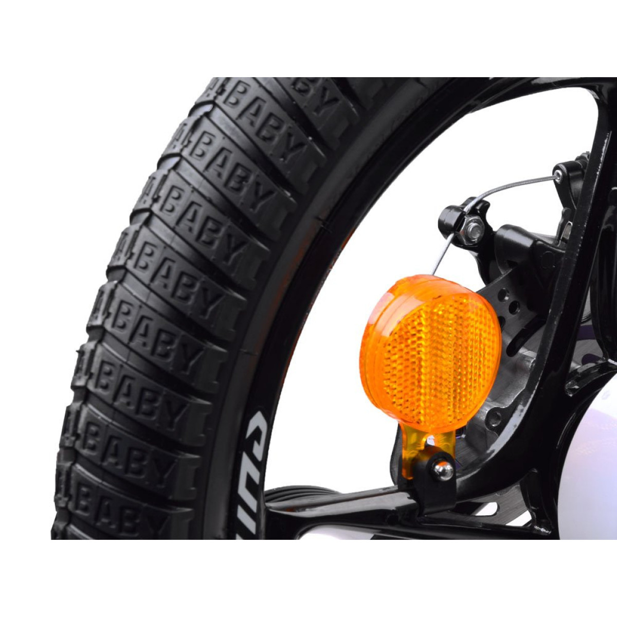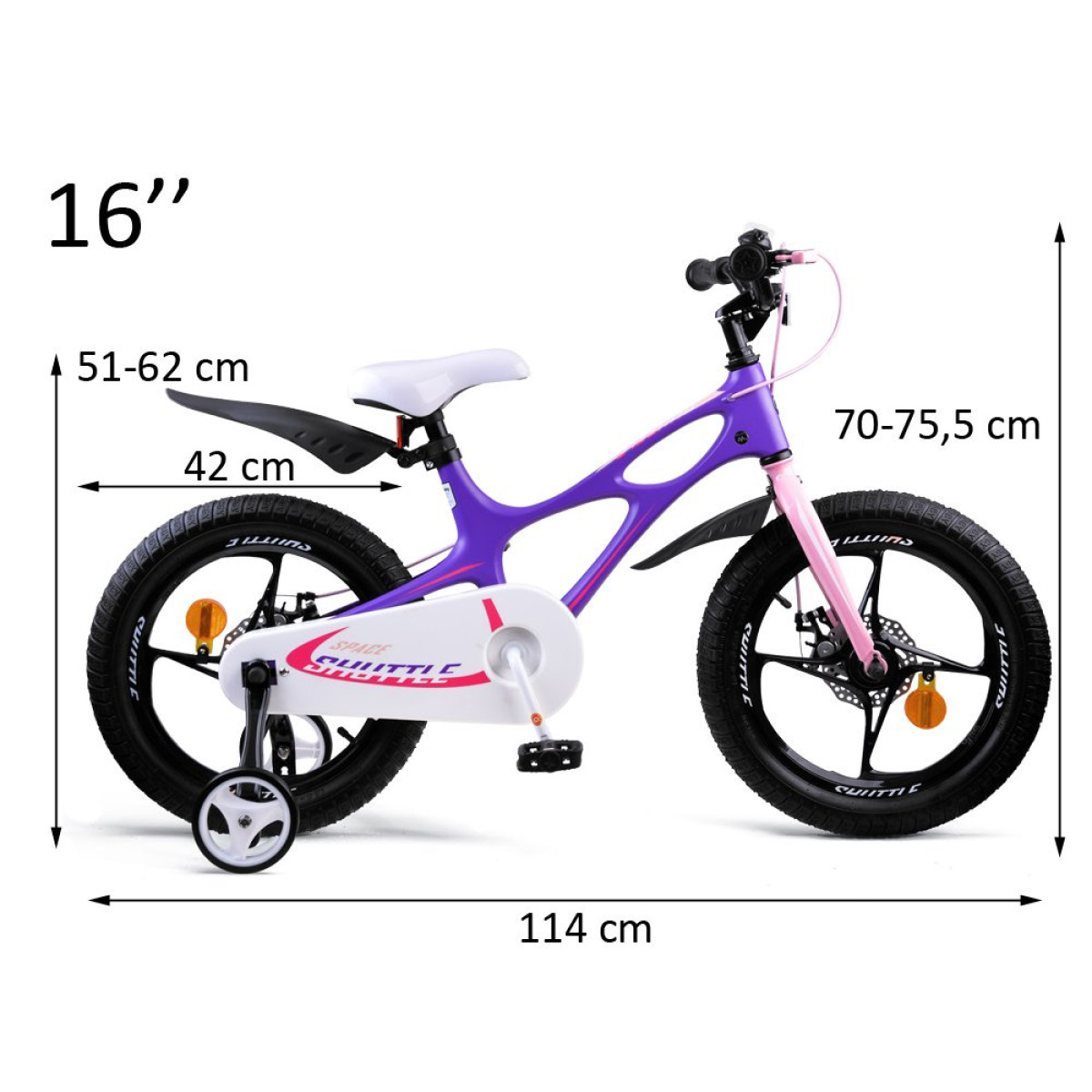 RoyalBaby Space Shuttle 16" jalgratas on ideaalne valik noorele jalgratturile, kes otsib kvaliteetset ja mugavat sõiduvahendit. Kerge magneesiumraam kaardus pinnaga ja sujuvate joontega. Reguleeritav juhtraud pakub turvalisust tänu kummist käepidemetele ja kinnisele kaitsmele, lisaks on kaasas kell. 16-tollised rattad ja kvaliteetsed rehvid, kahekordne ohutussüsteem koos ketaspiduritega tagavad mugava ja stabiilse sõidu. Kõrvalrattad aitavad alguses tasakaalu hoida, et laps õpiks kiiremini iseseisvalt sõitma. Keti täiskaitse kaitseb vigastuste ja määrdumise eest. Kokkupandav toetusjalg võimaldab lapsel jalgratta turvaliselt toetada pärast sõitu. Kõrgekvaliteedilised komponendid tagavad mugava kasutamise. Värvikombinatsioon ja graafika meeldivad nii omanikule kui ka naabruskonna sõpradele. Jalgratas on hästi kujundatud, pakkudes proportsionaalset vahemaad juhtrauast sadulani ja pedaalideni, et tagada sujuv ja mugav sõit.
