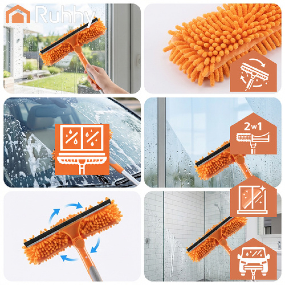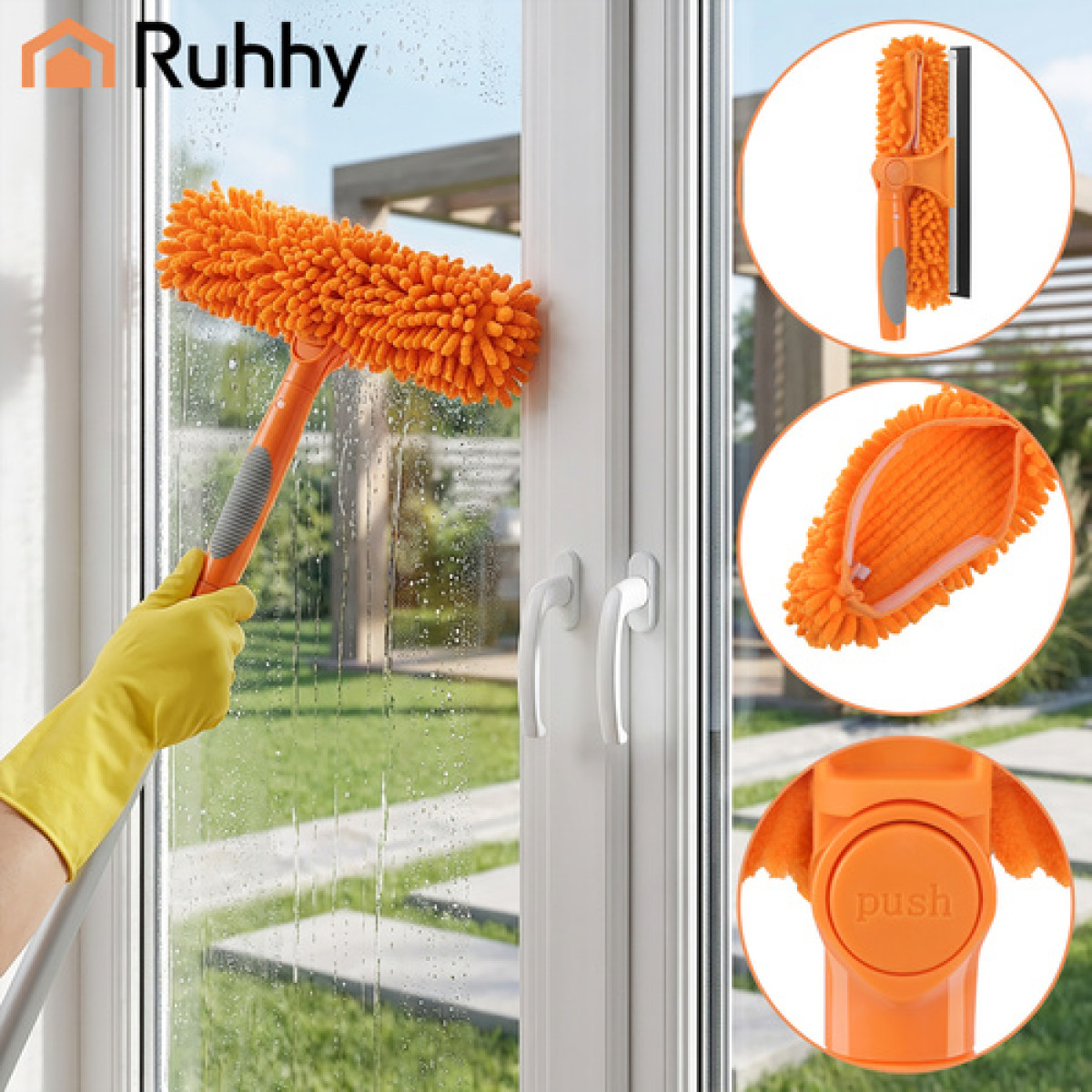 Kas oled tüdinenud klaasidele jäävatest triipudest ja ülemiste aknaosade puhastamisest kikivarvul? Ruhhy teleskoopakenapesur 3in1 aitab pesta aknaid, peegleid ja muid siledaid pindu ilma redelita. Reguleeritav kuni 1,8 m vars ja 180° pöörlev pea aitavad jõuda kohtadesse, kuhu tavaline aknakaabits ei ulatu.