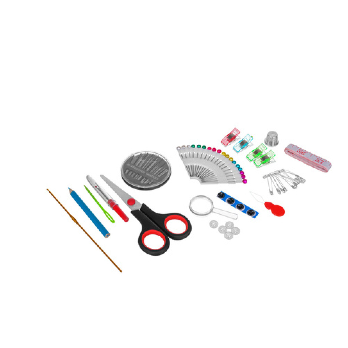 - 112 osa ühes komplektis – kõik vajalik väikesteks õmblustöödeks ühes kohas