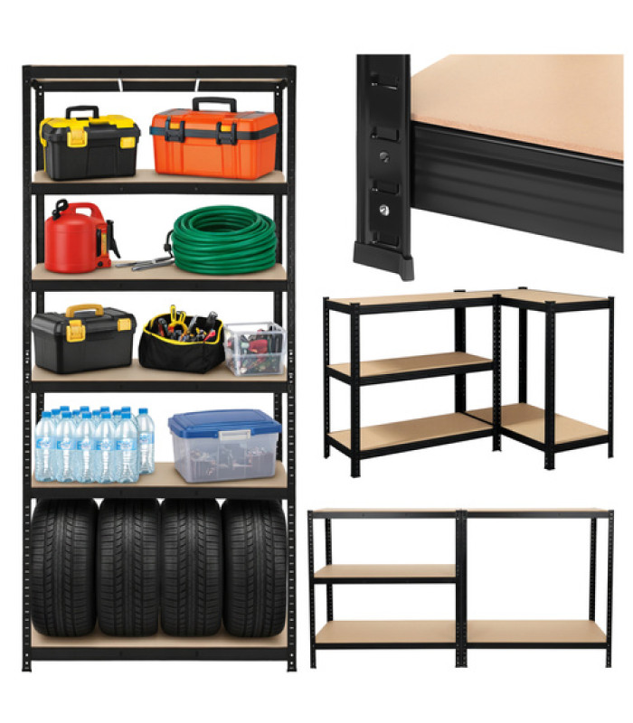 Galingas plieninis sandėliavimo stelažas 220x100x45 cm, juodas, dvigubai sutvirtintas, 5 MDF lentynos