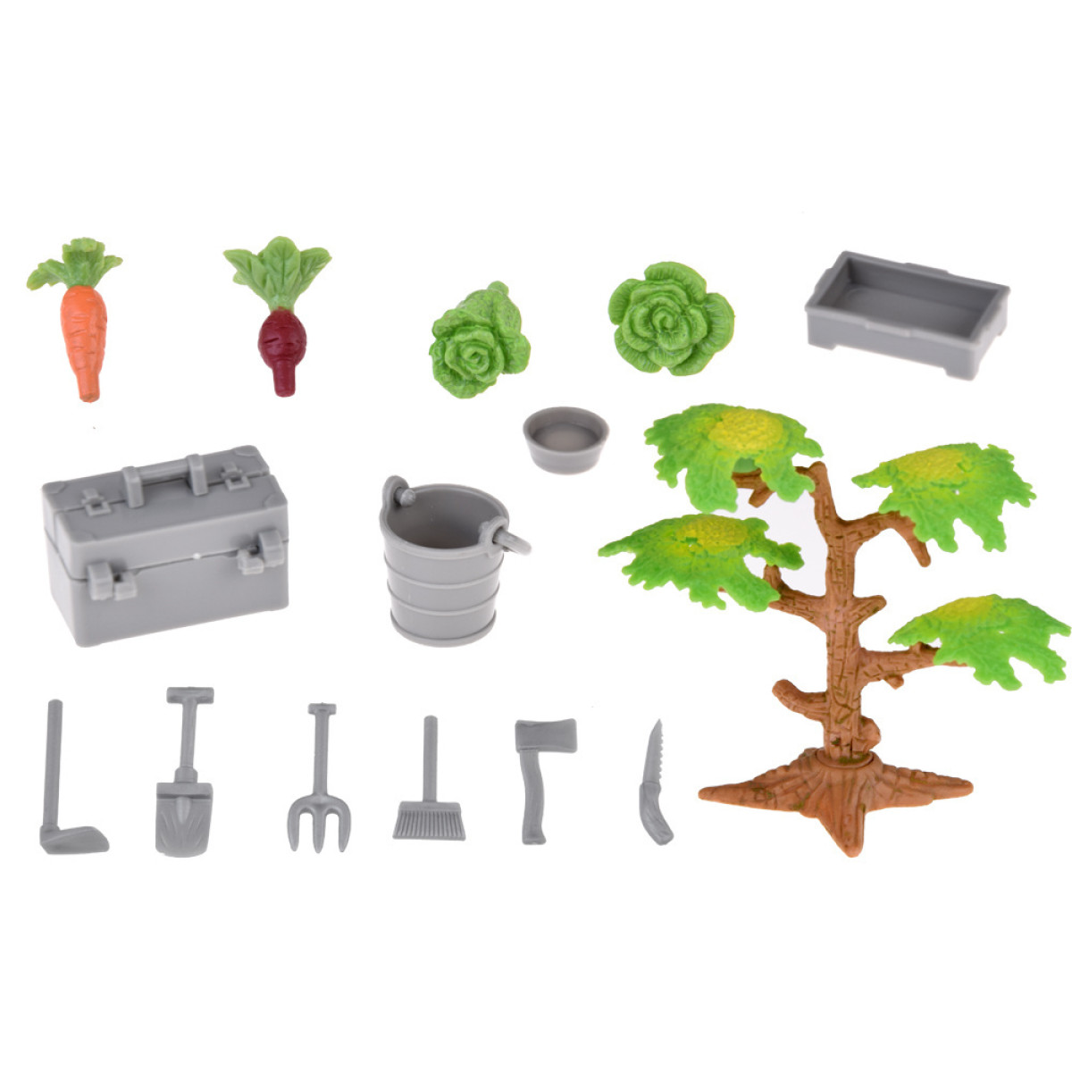 - Lisatarvikud: tööriistakast, viljakott, puu, köögiviljad