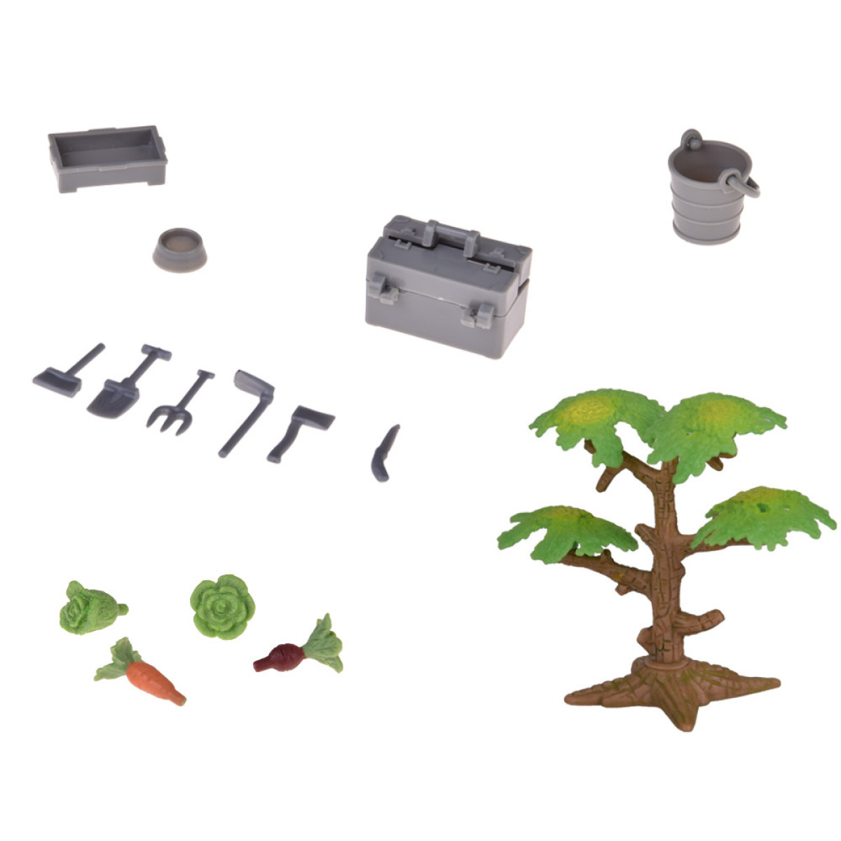 - Tööriistad ja tarvikud: labidas, hark, kirves, kõblas, ämber, kast, konteinerid, köögiviljad ja hein – need aitavad lastel tunda end tõelise talupidajana.