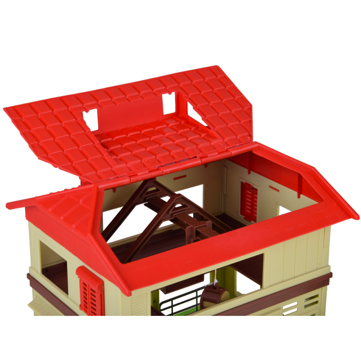 - Ladu punase katusega, mis toimib sööda ladustamiseks. Katust saab avada ja spetsiaalne liikuv käepide lihtsustab esemete tõstmist ja langetamist, lisades mängule realismi.