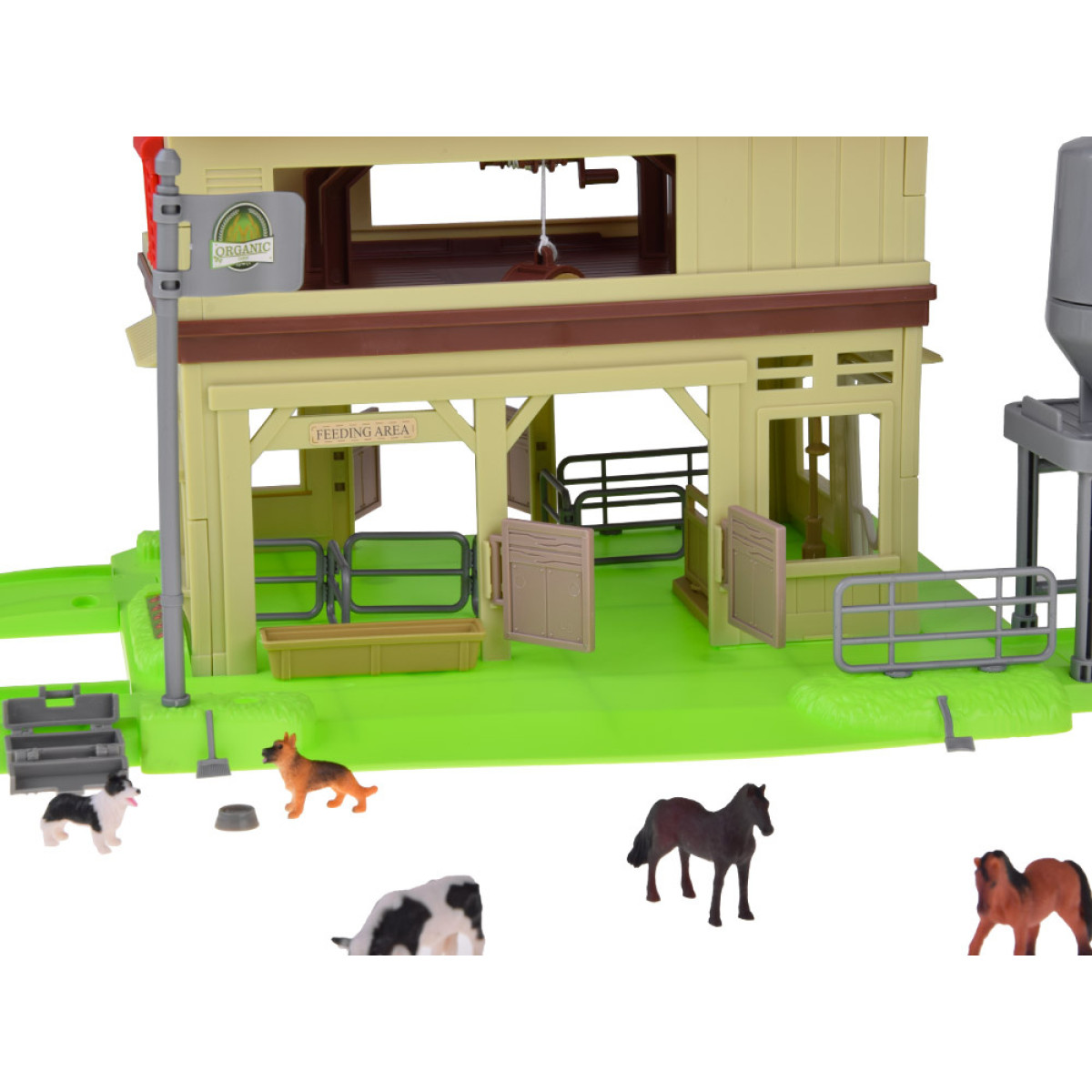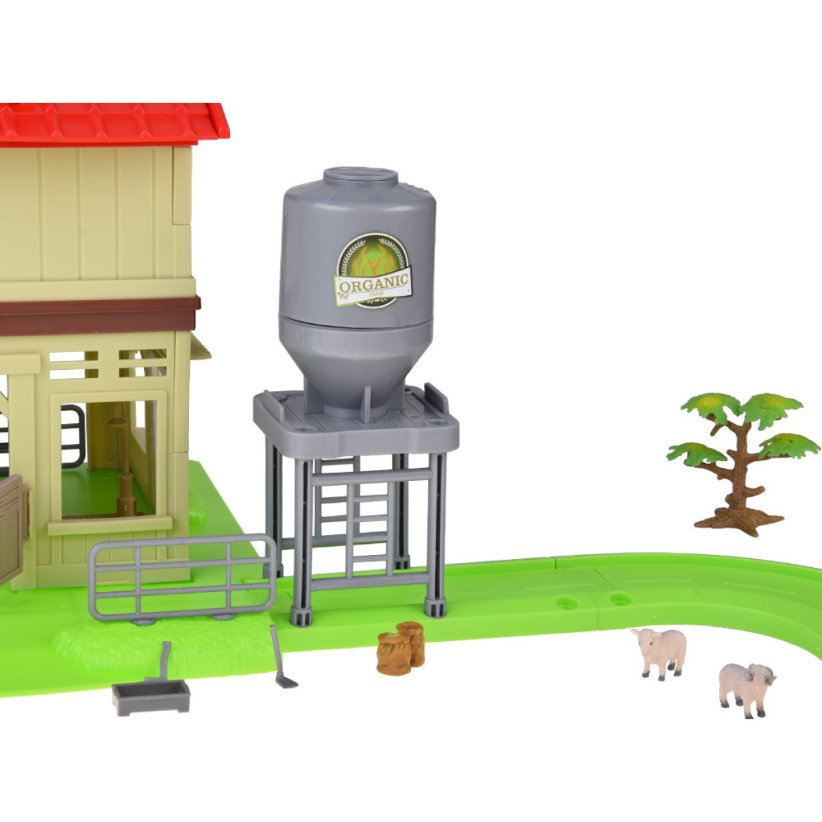 - Viljasilo praktilise funktsiooniga, mis võimaldab toitu sisse ja välja kallata, andes lastele võimaluse loomade eest hoolitseda realistlikult.