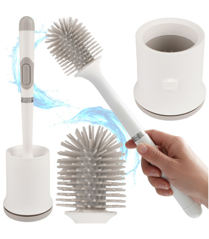 RUHHY šepetys su gumine galvute ir ventiliuojamu korpusu Užtikrina efektyvų valymą be taškymosi ar nemalonių kvapų . Ilga rankena ir pakabinamas indas užtikrina patogumą, higieną ir estetiką viename praktiškame bet kurio vonios kambario priede.