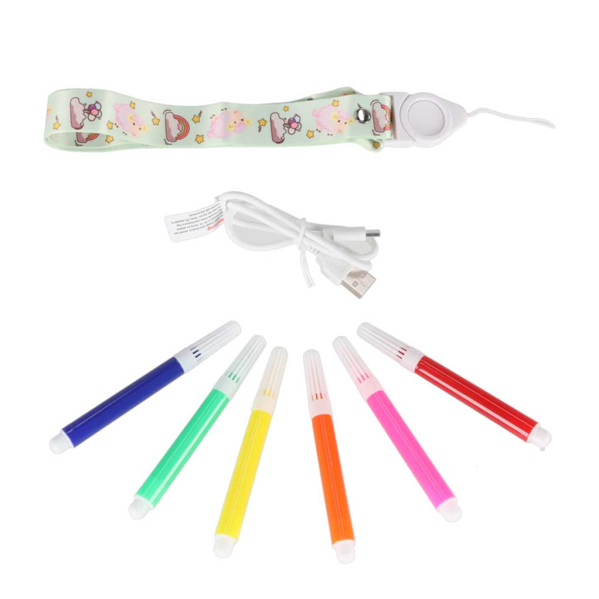 - 6 värvilist mini markerit: punane, roosa, oranž, kollane, roheline, sinine