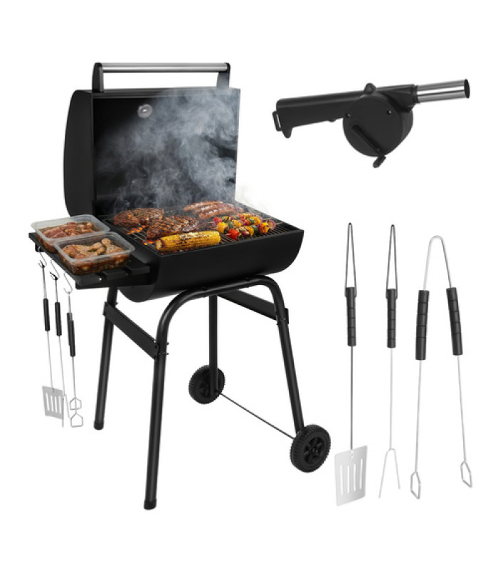 Anglies kepsninė su dangčiu, nešiojama sodo kepsninė, didelės grotelės, termometras ir priedai