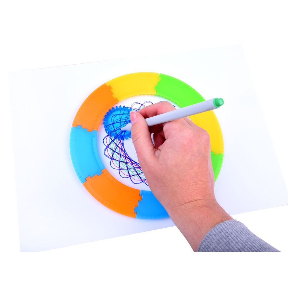 Spirograaf töötab rööbaste ehitamise ja nende sees joonistamise põhimõttel, kasutades spetsiaalseid šabloone. Laps saab katsetada erinevaid kombinatsioone ja jälgida, kuidas tekivad hämmastavad värvilised mustrid.